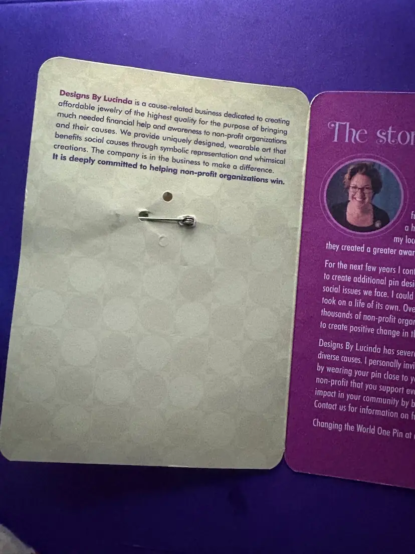 CONDITION: Pin is in excellent vintage condition. Includes Designs By Lucinda sticker on back.