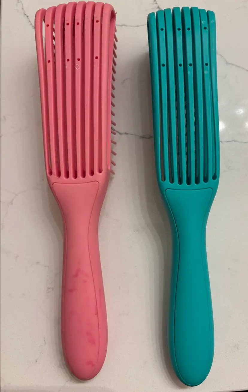 These bendable brushes are perfect for gentle detangling and caring for sensitive scalps. Marks on back of pink handle (see photo).