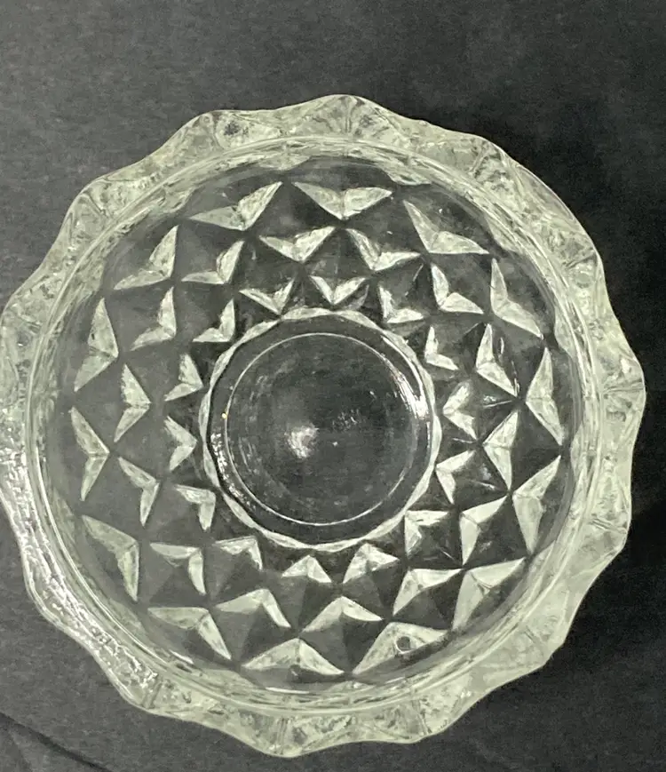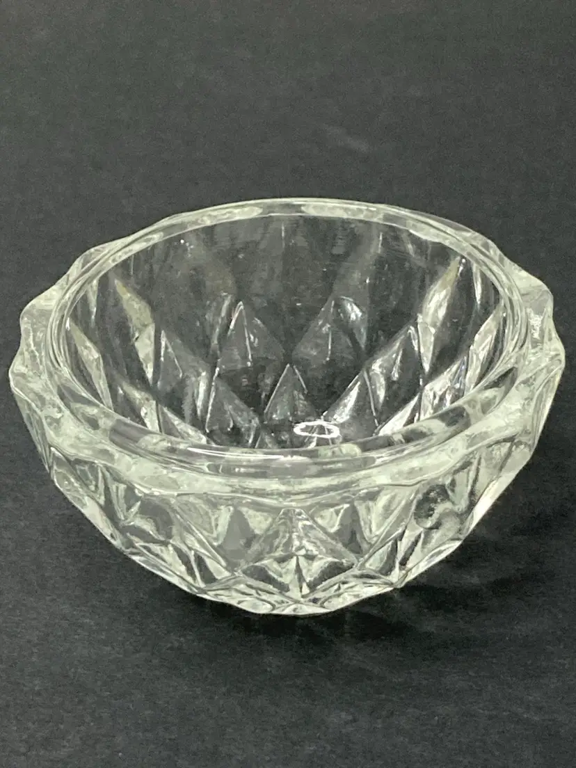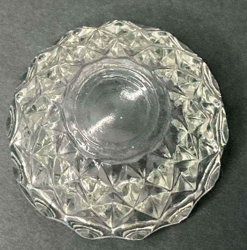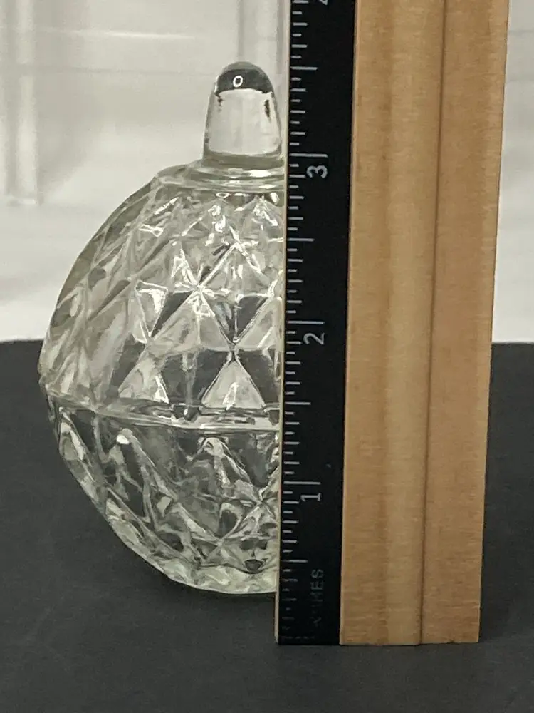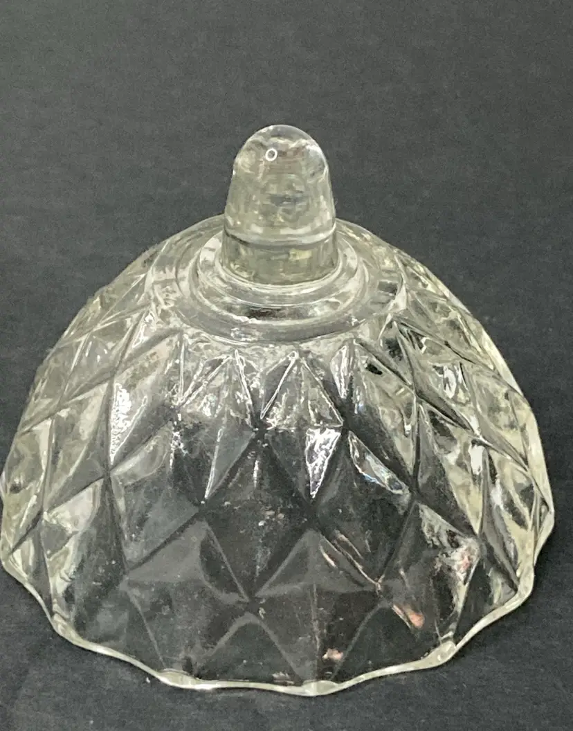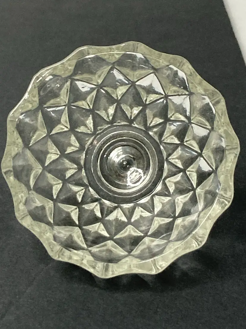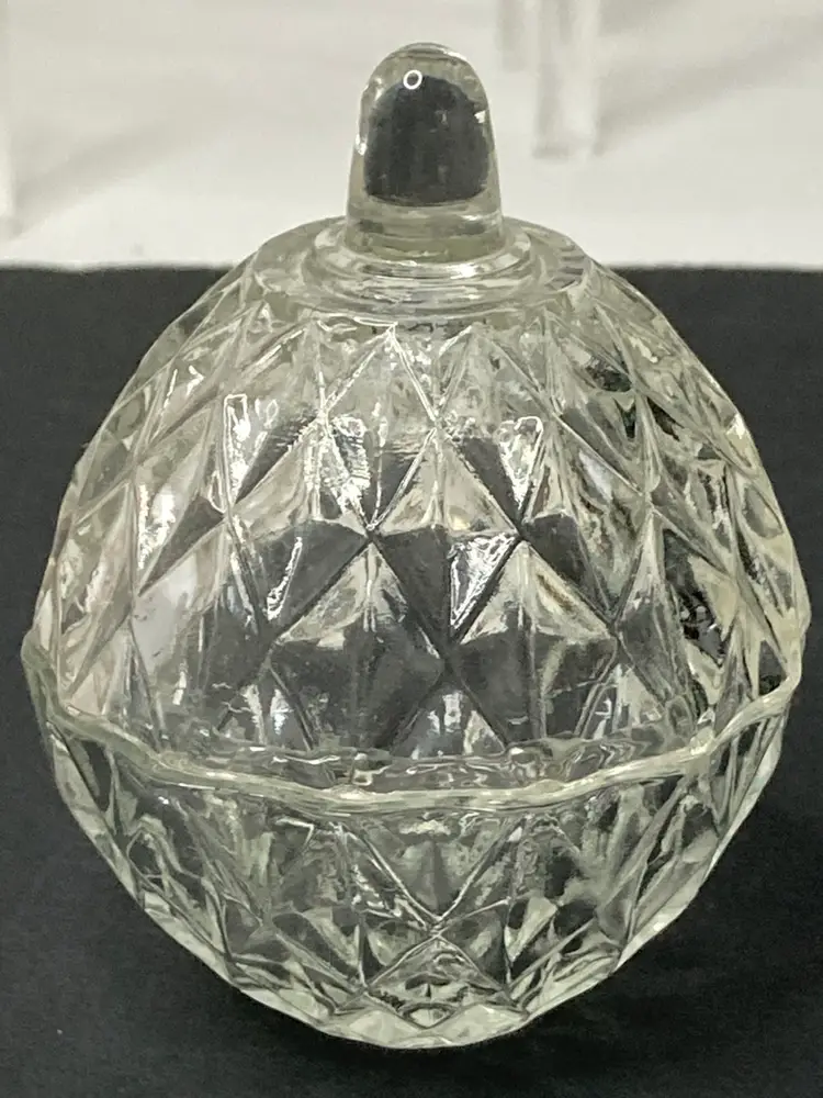Diamond Faceted Pattern Glass Trinket Box! Stem-like Finial! 3 1/2” Tall 2 1/2” Diameter! NEW to District? Enter code Michel42 into your wallet prior to your first ever purchase and save $5 off of any $10 or more! Give me a Follow and I'll Follow you back! :)