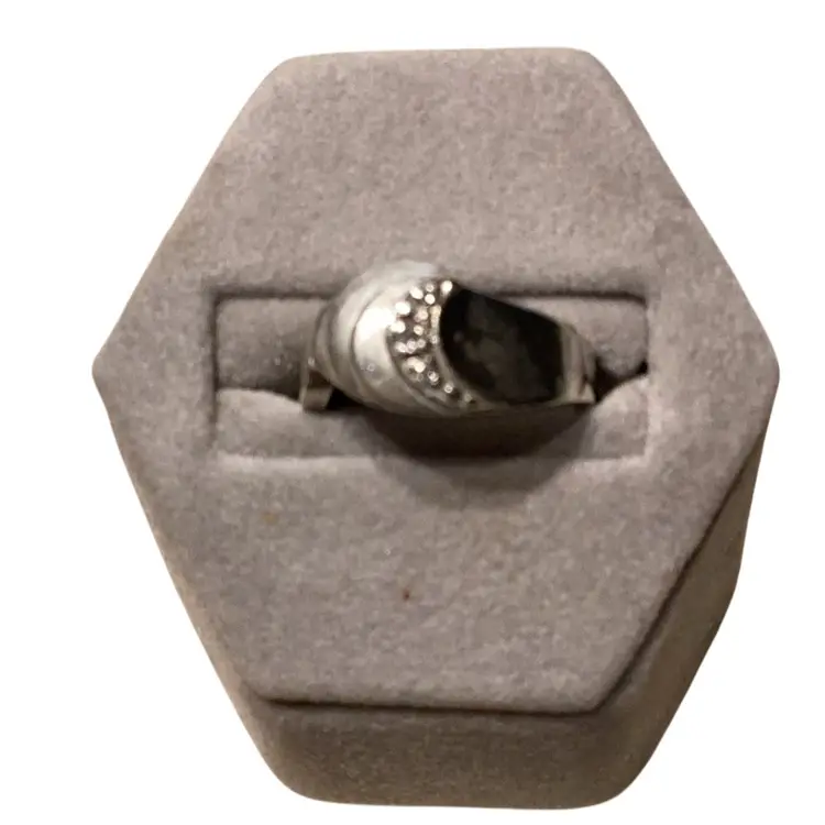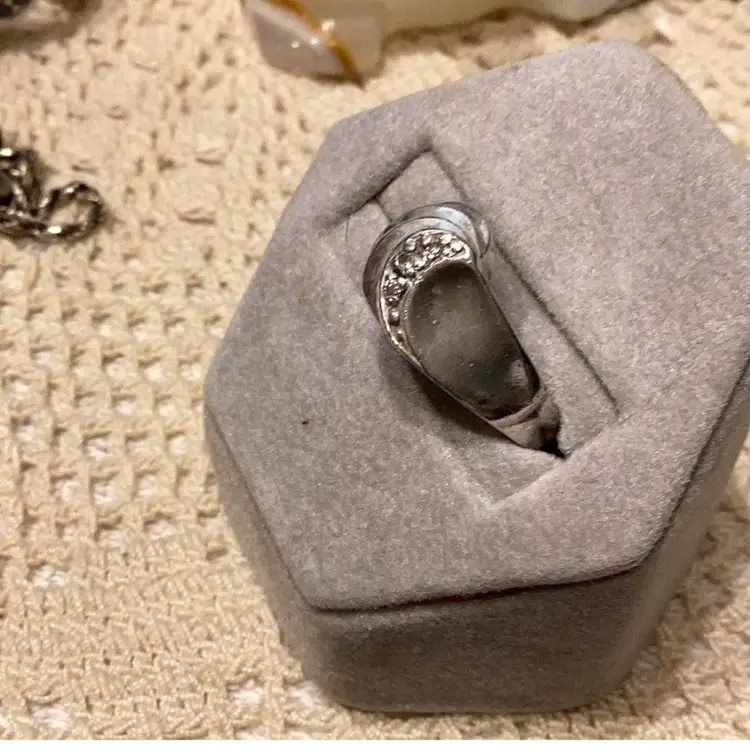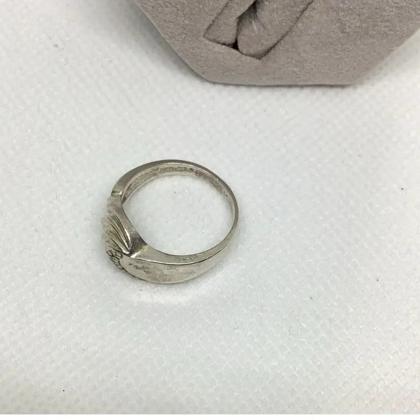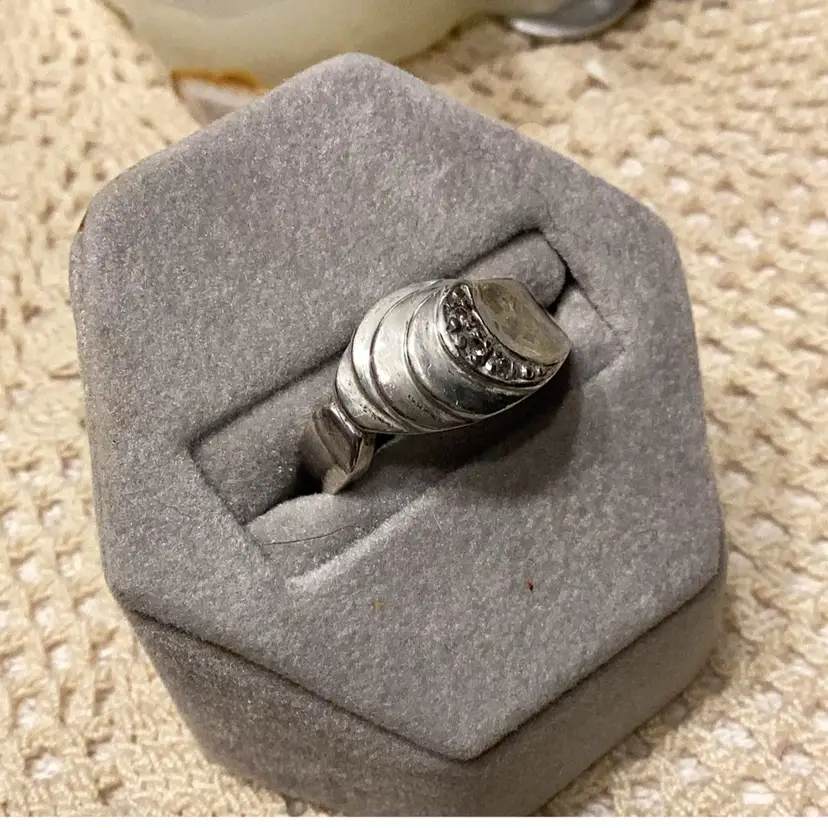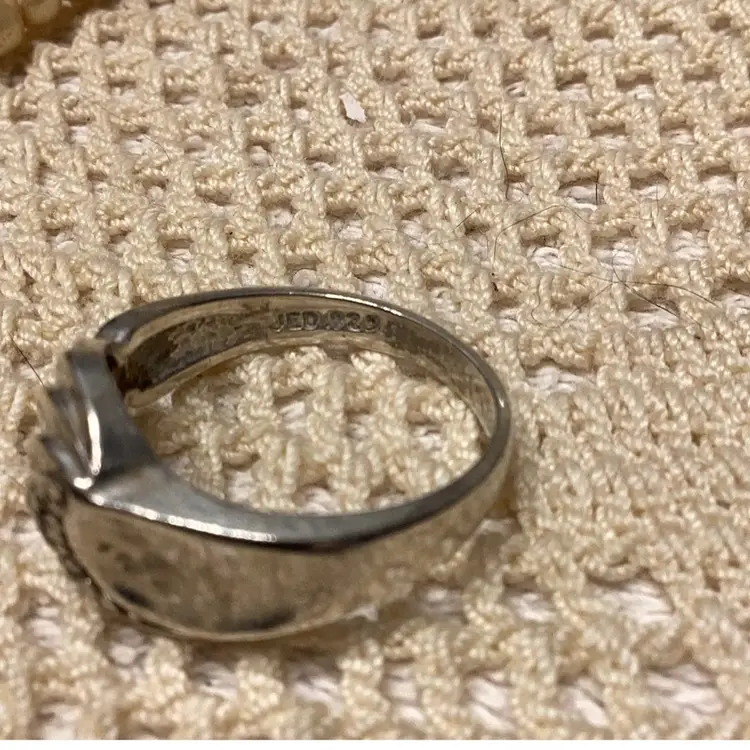 Size 6 sterling silver 925 stamp JED3 small diamonds and I did test them. This used to be my ring. I’ve had this for a long time. It is a size small six. I am shipping this priority boxed. No progressive with insurance