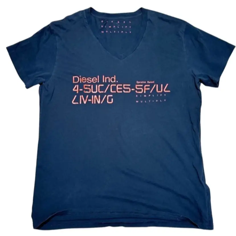 Diesel Industries For Successful Living V Neck T Shirt Blue