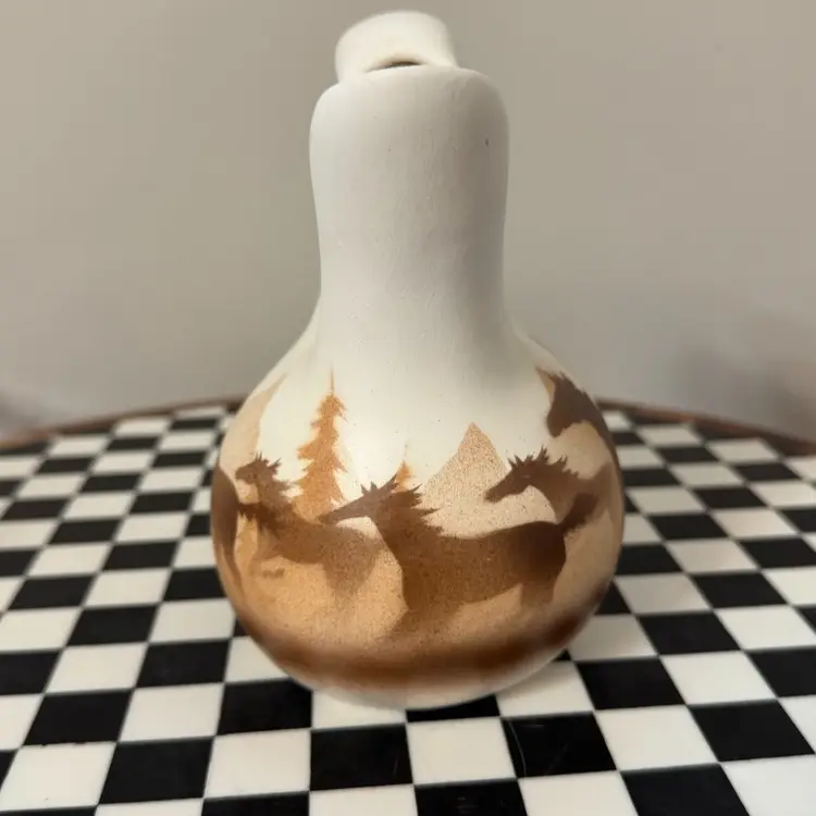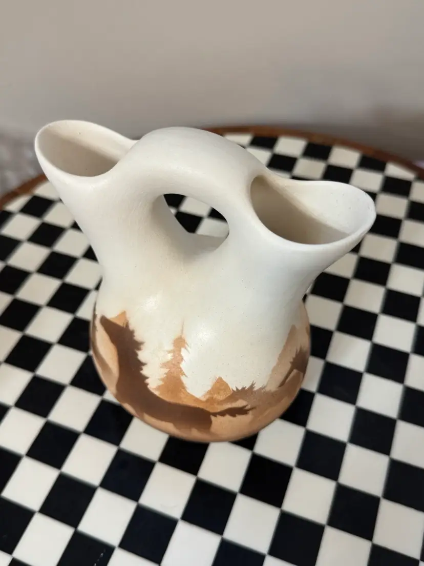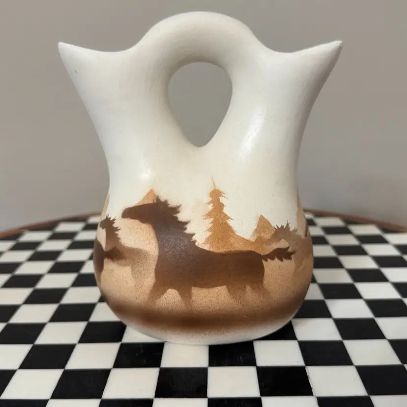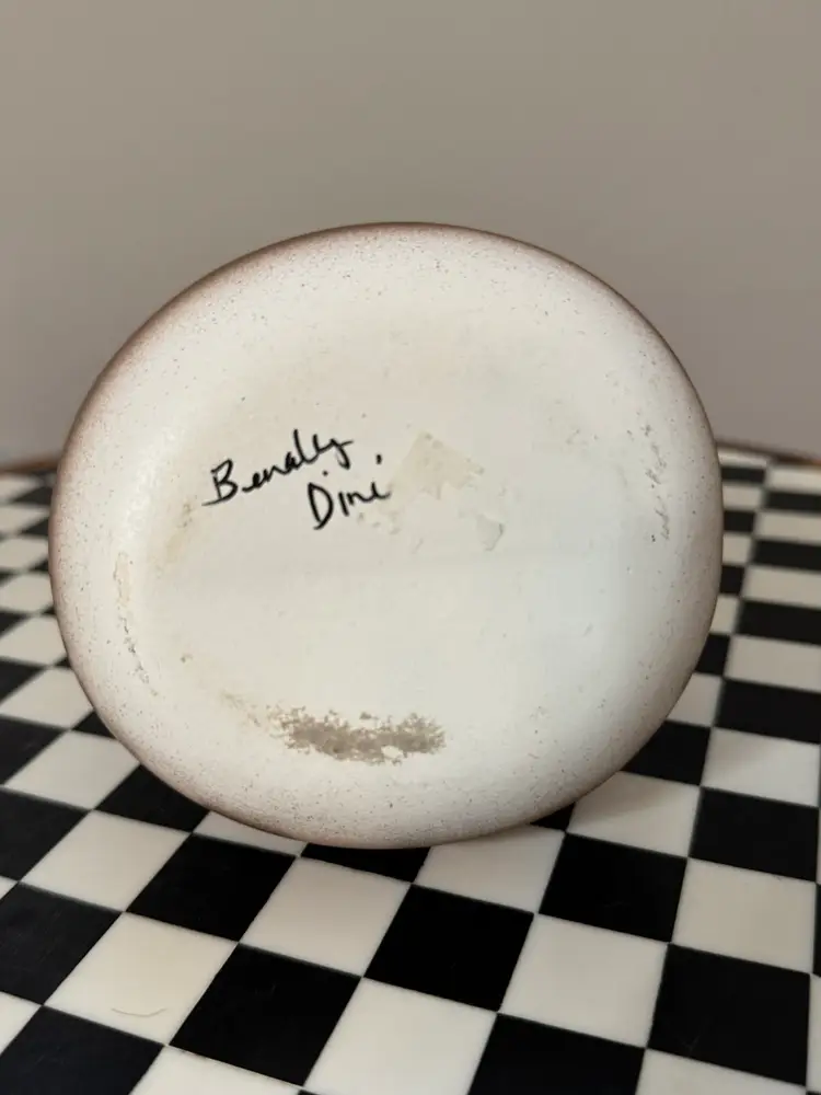 Beautiful condition, Benally signed Navajo wedding vase. Awesome fall colors and design. Measures 5” tall.
