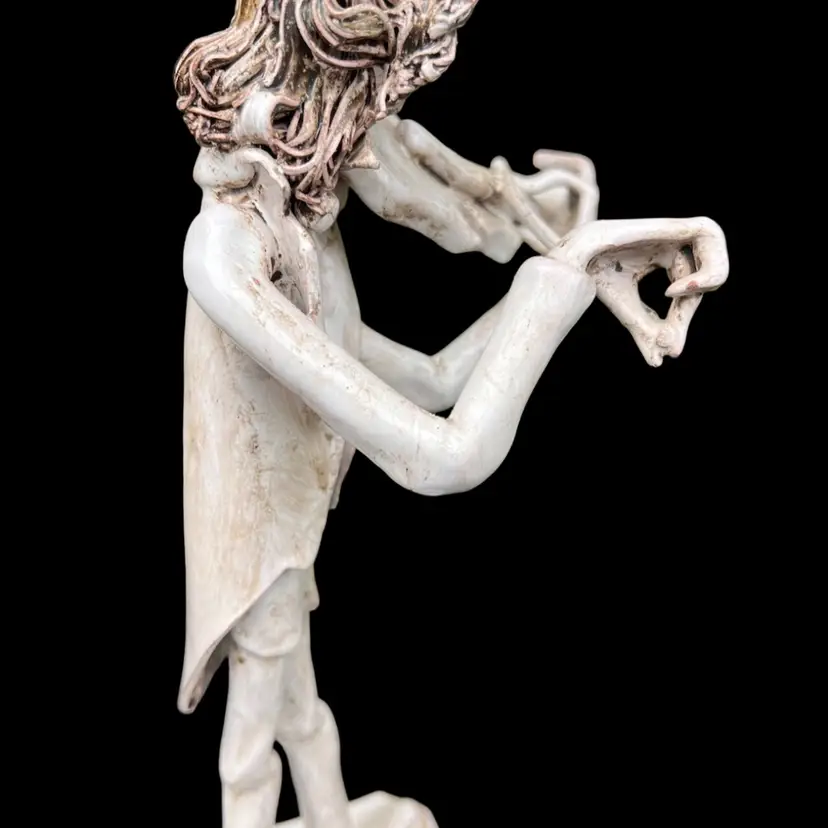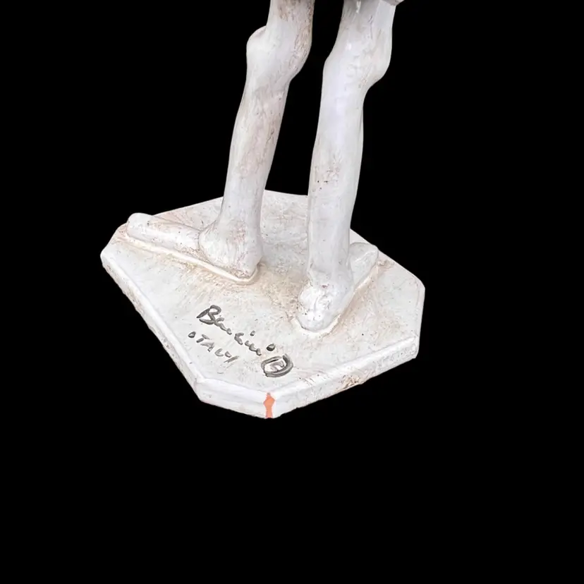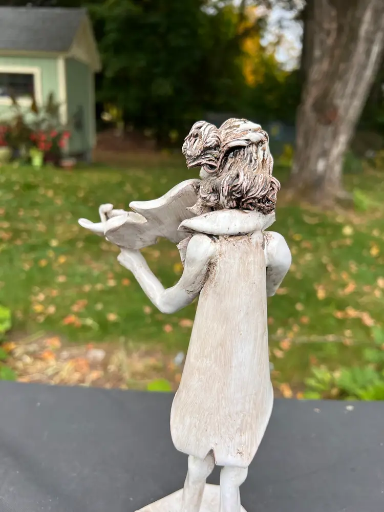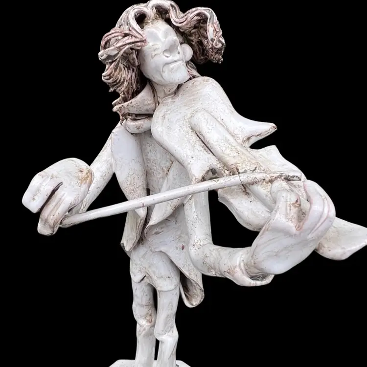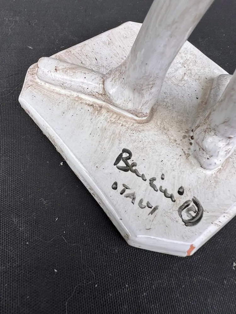 10” tall Signed Hairline crack in the bow and a few minor imperfections in the glaze. All shown in the photos. This will ship double boxed.