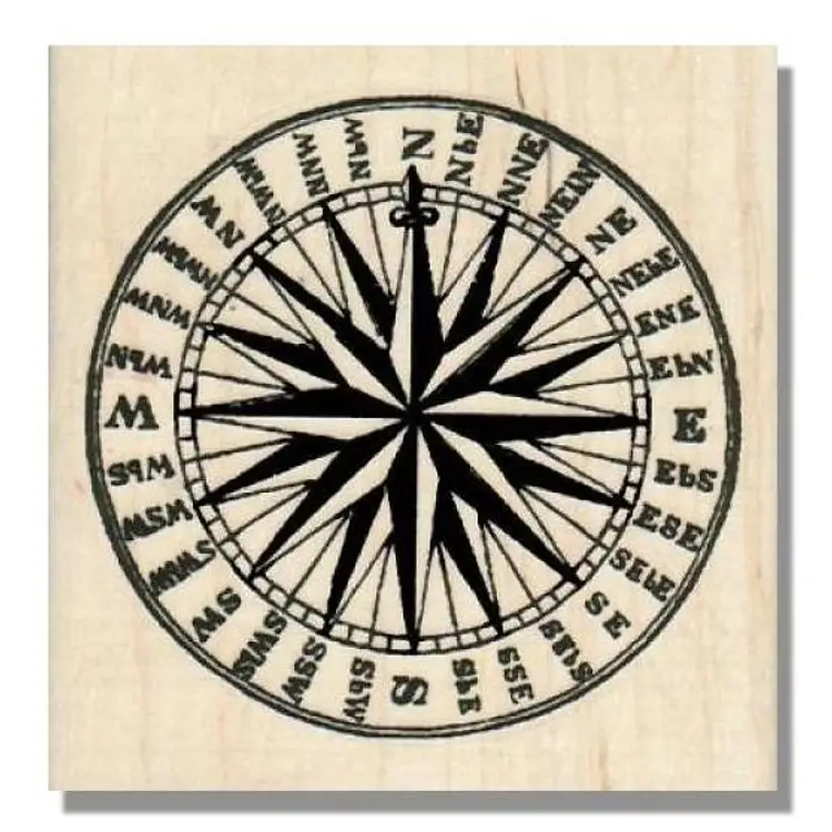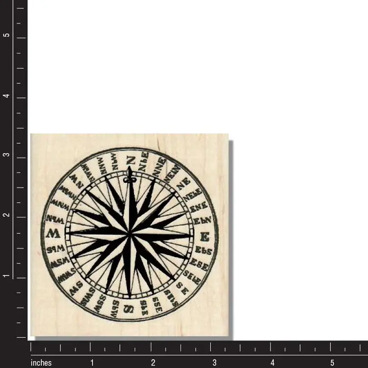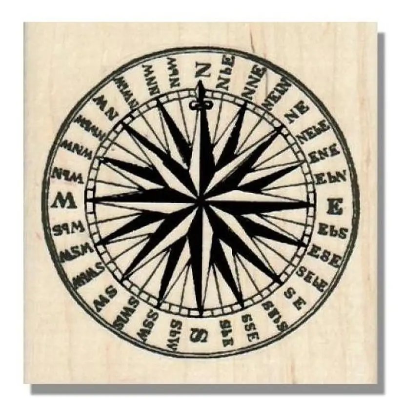 Directional Circle Compass Rose Rubber Stamp Size: 3-1/4 x 3-1/4 Red Rubber Handmade