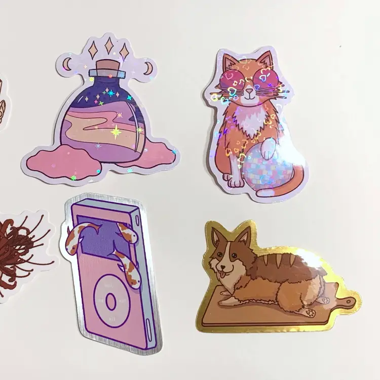 Size: 1.5 x 2.5 in Material: Holographic Vinyl Sticker Color may vary slightly depending on screen calibration