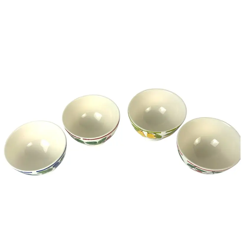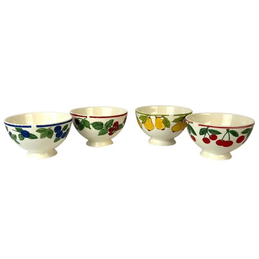 Elevate your dining experience with the Discontinued Sur La Table Fruta Variada Footed Bowl Set. This set of four round stoneware bowls features a vibrant multicolored fruit pattern that is sure to add a touch of whimsy to any table setting. Each bowl measures 5.5 inches in diameter, making them perfect for a variety of dishes, from hearty soups to fresh salads.
