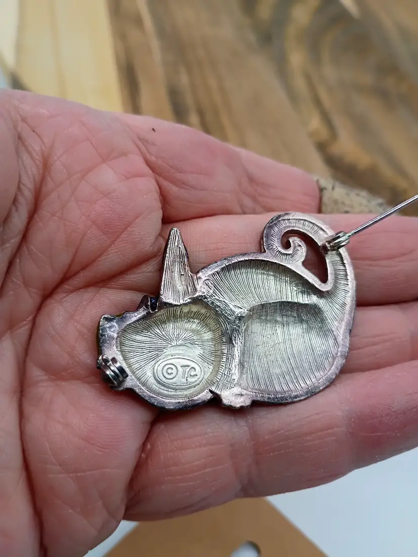 Disney Alice in Wonderland Enameled Bejeweled Cheshire Cat Broach Marked TC. ( TOUCHSTONE CRYSTAL subsidy of Swarovski). This ius 2 inches long and 1.5 inches tall. MardiGras Theme to colors. This is preowned, No chips cracks or flea bites on enamel pin back is secure and functions normally. No warping or other damage No missing stones. Excellent condition. Ships USPS
