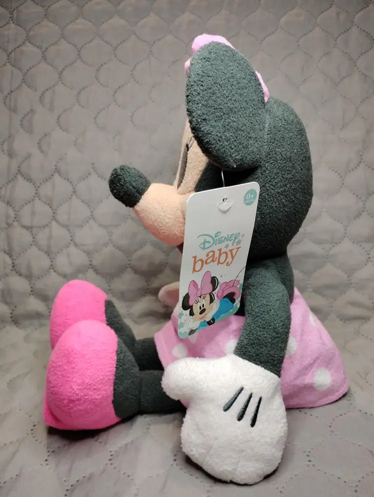 This adorable Disney Baby Minnie Mouse plush stuffed animal toy is perfect for any fan of the beloved character. With a pastel pink color and measuring 14 inches, it is a great addition to any stuffed animal collection. The toy is recommended for children ages 0+ and is small enough to take on trips or adventures. The plush toy features Minnie Mouse, a character from the Mickey Mouse & Friends family, and is made by Disney. It is a great gift for any child who loves the character or for collectors who want to add to their collection. Bring home this cute and cuddly toy today!