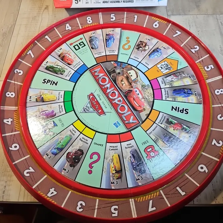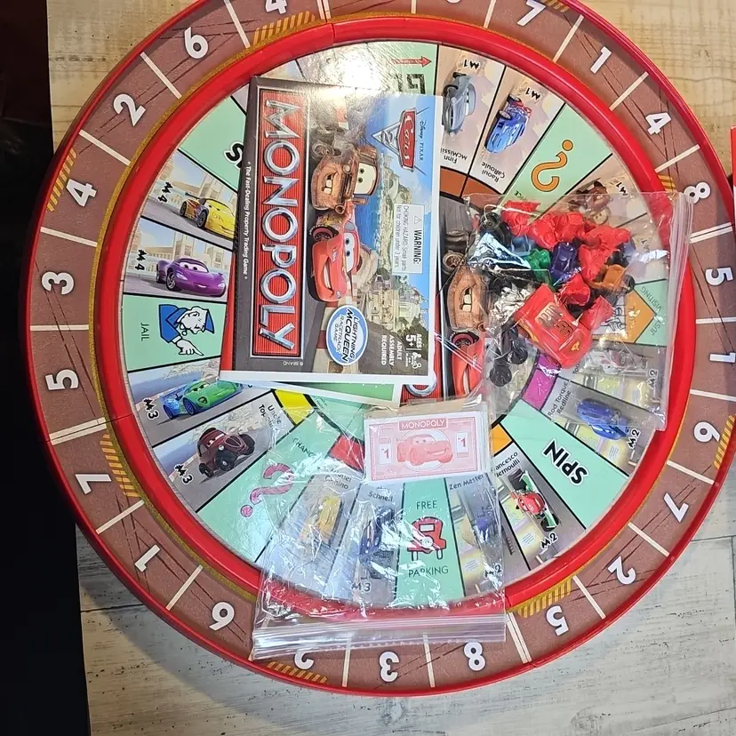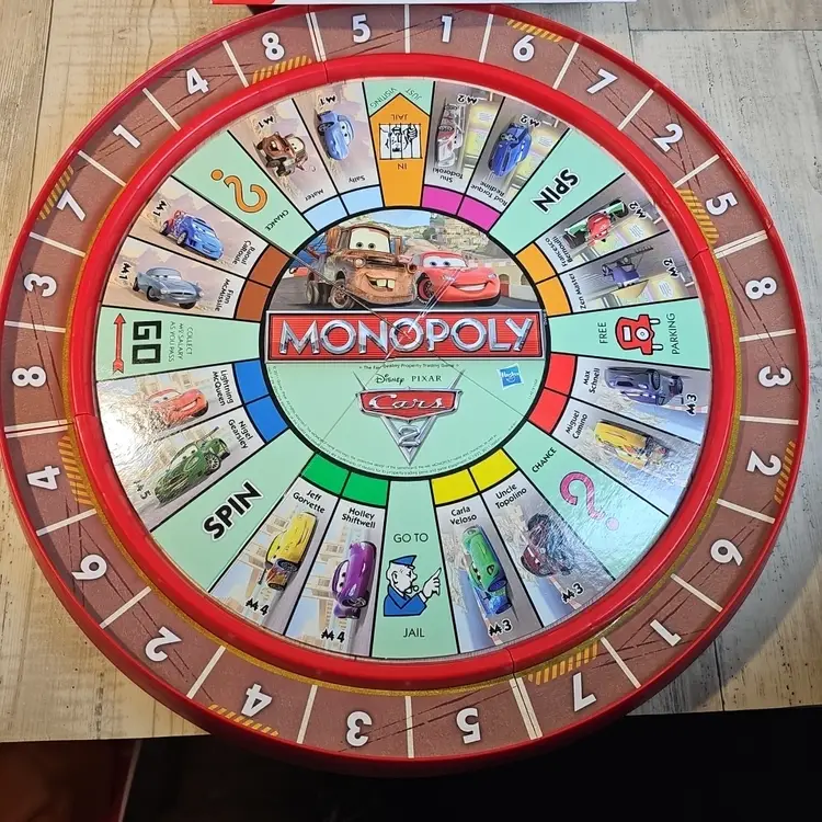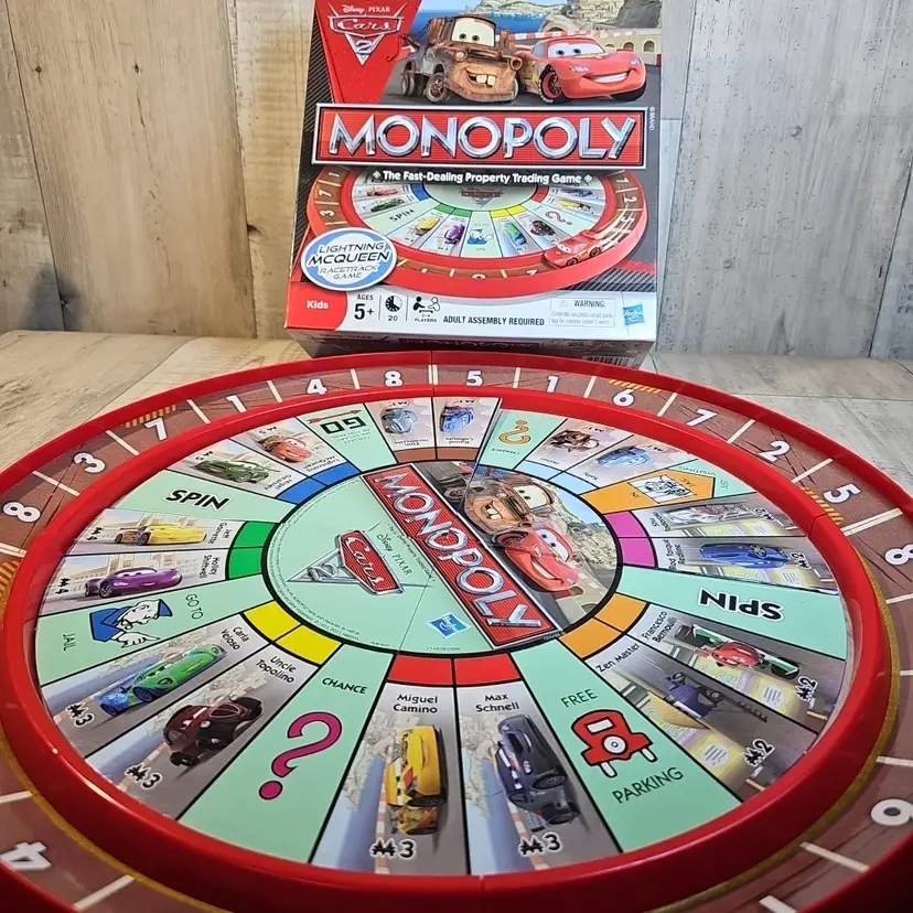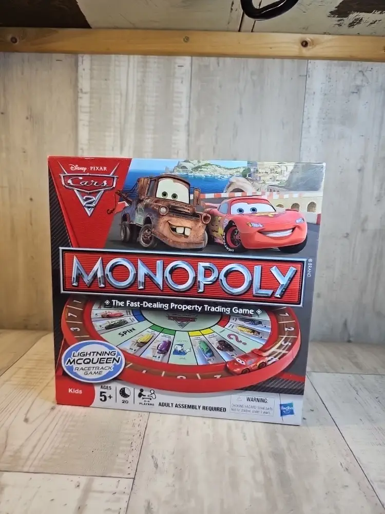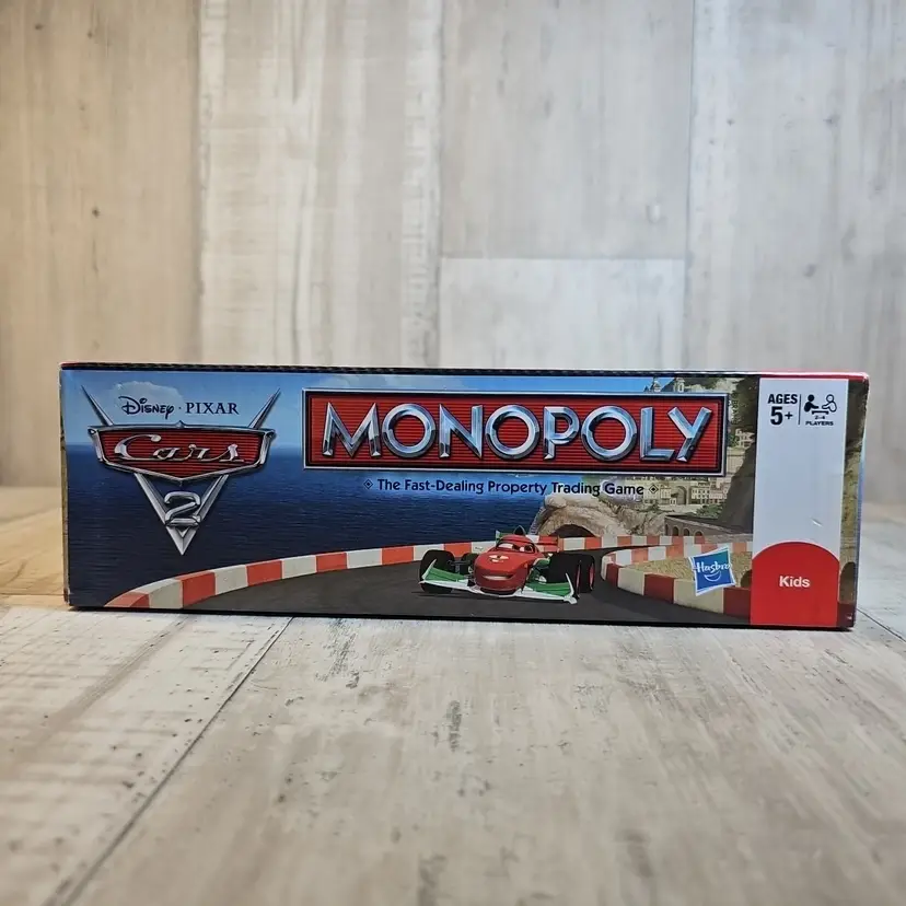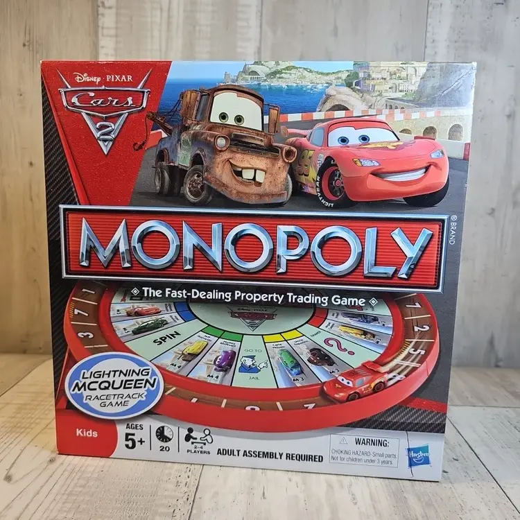 This game is in excellent condition with all parts including the instructions. The NEW Monopoly Board Game Disney Cars 2 (2011 Hasbro) features a Lightning McQueen-themed version of the classic Monopoly game. Designed for 2 players, this complete game is perfect for children aged 5 and up, with a finance theme that appeals to both boys and girls. The game includes all the necessary components and is sealed, making it a great addition to any board game collection for fans of Disney Cars 2.