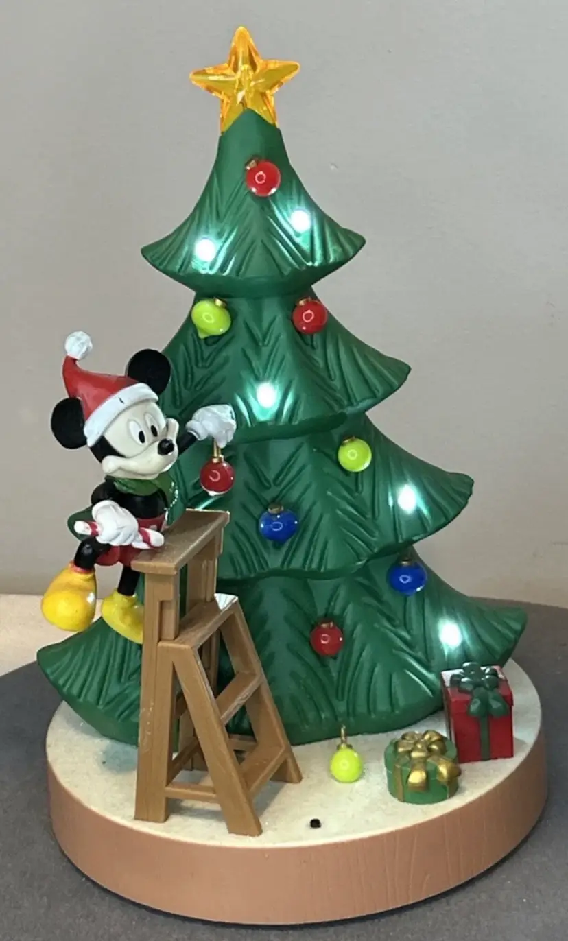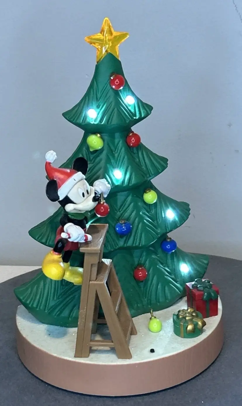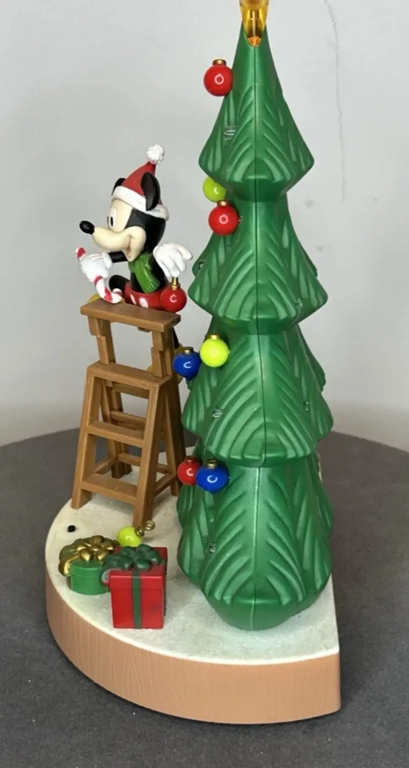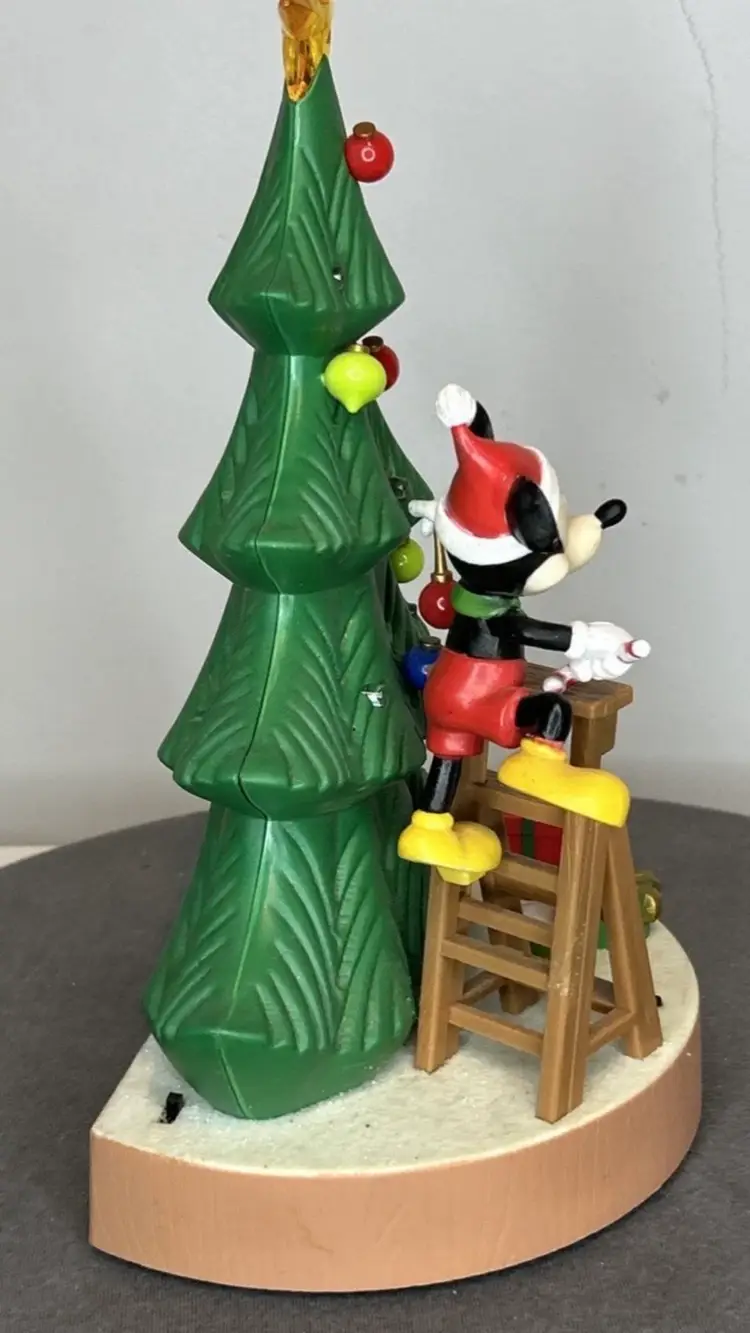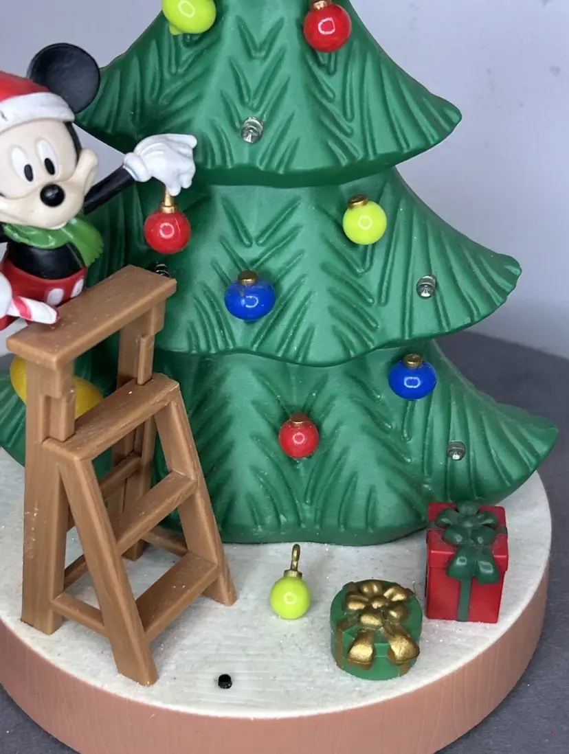 The Disney Christmas Animated Mickey Mouse Decorating the Tree Music LED Lights is a collectible item that brings the magic of Disney to your holiday decor. This officially licensed product features the beloved character Mickey Mouse in a festive Christmas theme, perfect for adding a touch of nostalgia and whimsy to your home. With its animated design, LED lights, and music, this decoration is sure to delight both children and adults alike during the holiday season. Made of durable hard plastic and measuring approximately 11 inches in height and 7 inches in width, this contemporary piece from Groupo Ruz Disney is a must-have for any Disney fan looking to spruce up their Christmas tree. Disney Christmas Animated Mickey Mouse Decorating the Tree Music LED Lights is in excellent pre-owned condition. The lights and music work great! Please review all pictures for proper assessment of its excellent vintage pre-owned condition. 3 "AA" batteries included.