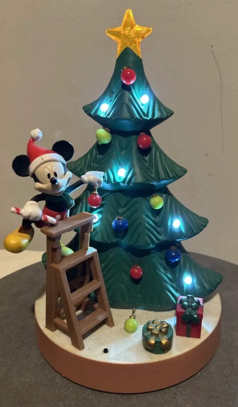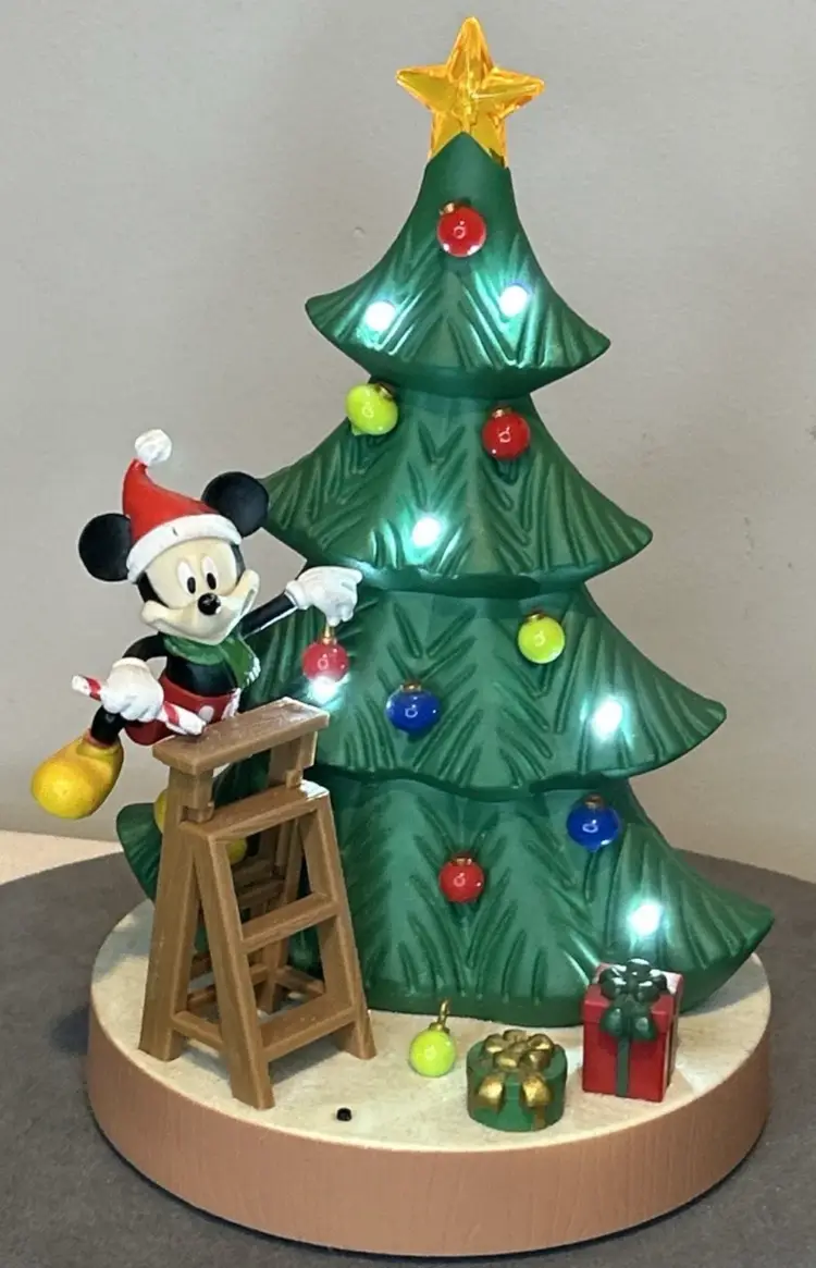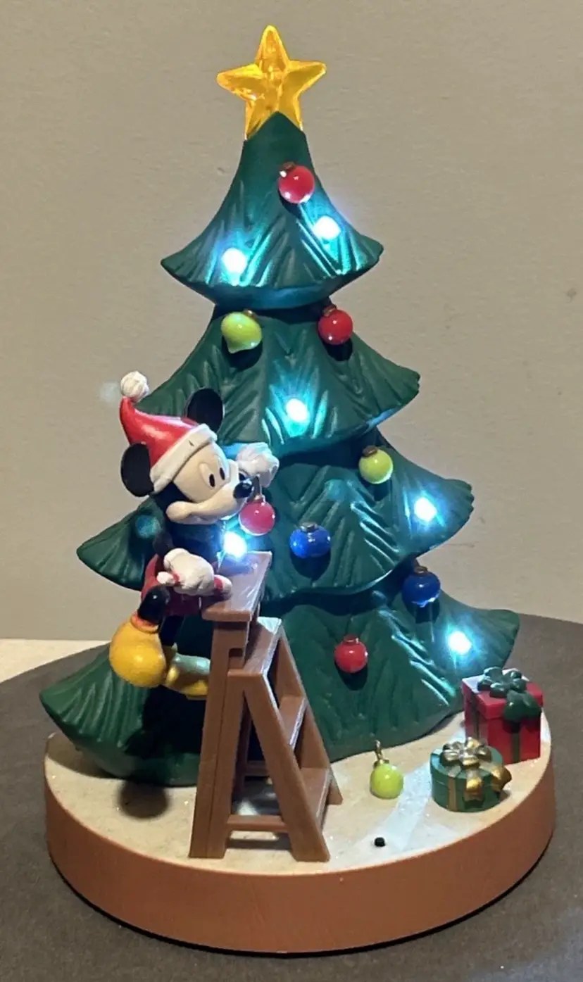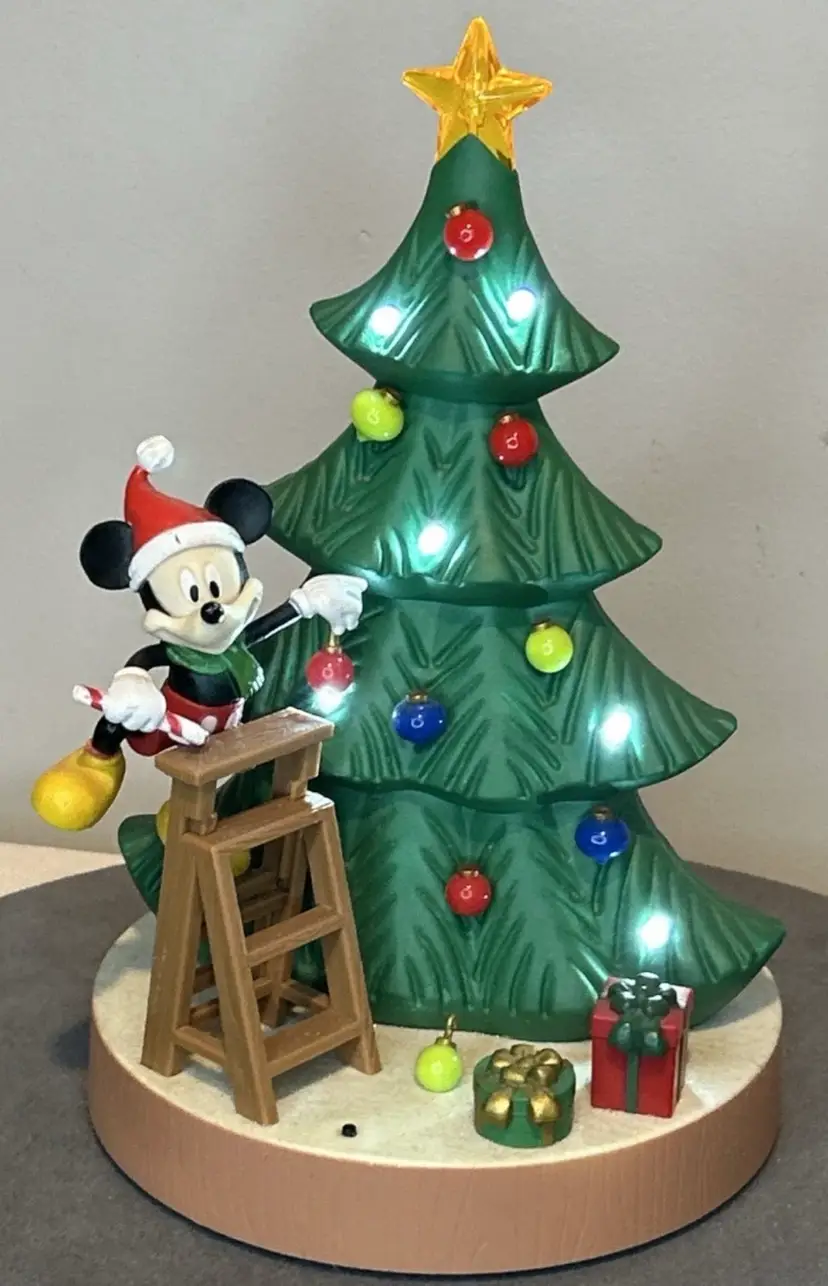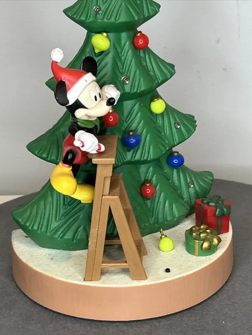 The Disney Christmas Animated Mickey Mouse Decorating the Tree Music LED Lights is a collectible item that brings the magic of Disney to your holiday decor. This officially licensed product features the beloved character Mickey Mouse in a festive Christmas theme, perfect for adding a touch of nostalgia and whimsy to your home. With its animated design, LED lights, and music, this decoration is sure to delight both children and adults alike during the holiday season. Made of durable hard plastic and measuring approximately 11 inches in height and 7 inches in width, this contemporary piece from Groupo Ruz Disney is a must-have for any Disney fan looking to spruce up their Christmas tree. Disney Christmas Animated Mickey Mouse Decorating the Tree Music LED Lights is in excellent pre-owned condition. The lights and music work great! Please review all pictures for proper assessment of its excellent vintage pre-owned condition. 3 "AA" batteries included.