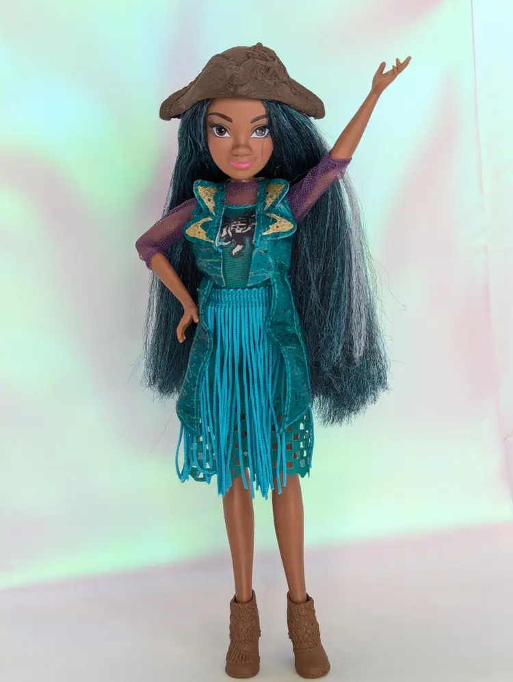 Disney Descendants 2 Singing Uma Doll in original outfit with Hat & Shoes - By Hasbro - WORKS - This doll is in very good condition. She comes as shown with her hat still attached to her head. Original dress and shoes Doll has switch on her back, sings when you lift her straight arm. She has new batteries L44 (takes 3, Included) Comes from a smoke free, pet friendly home.