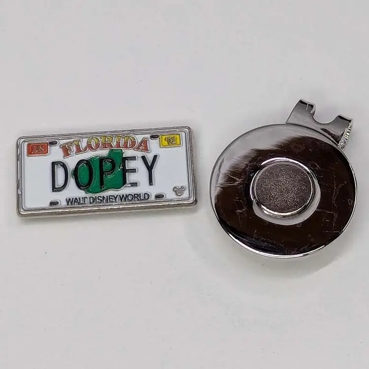 “This unique ball marker is handmade from an Official Disney Trading Pin.”