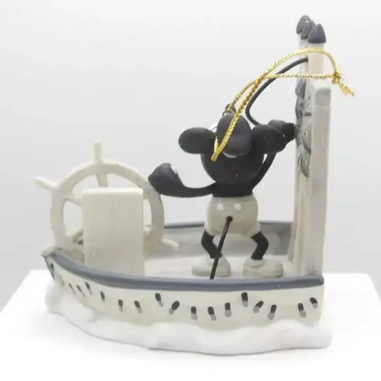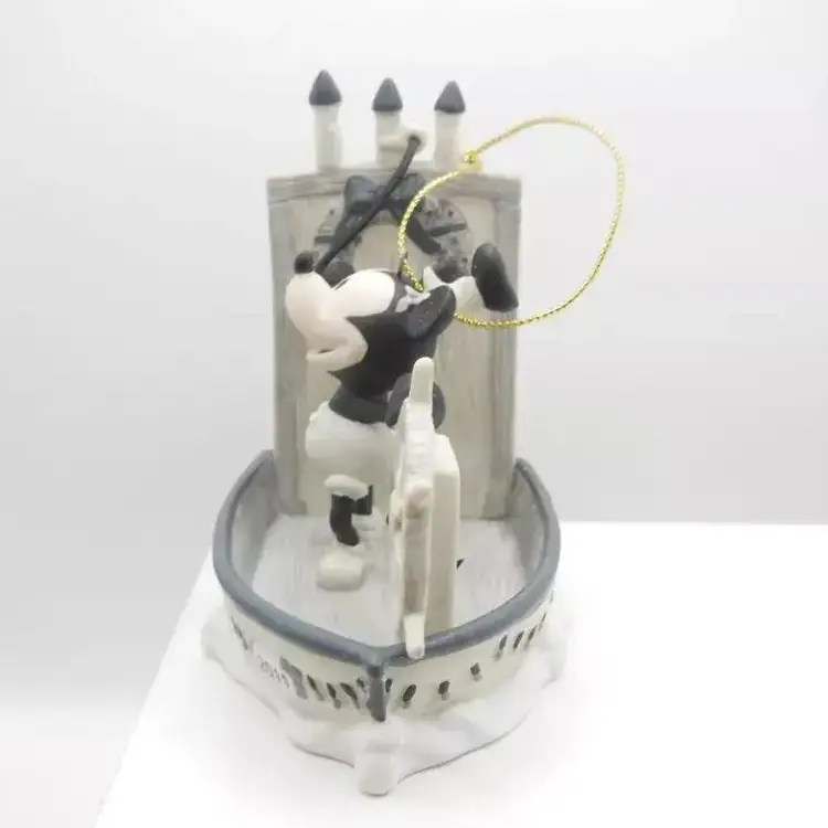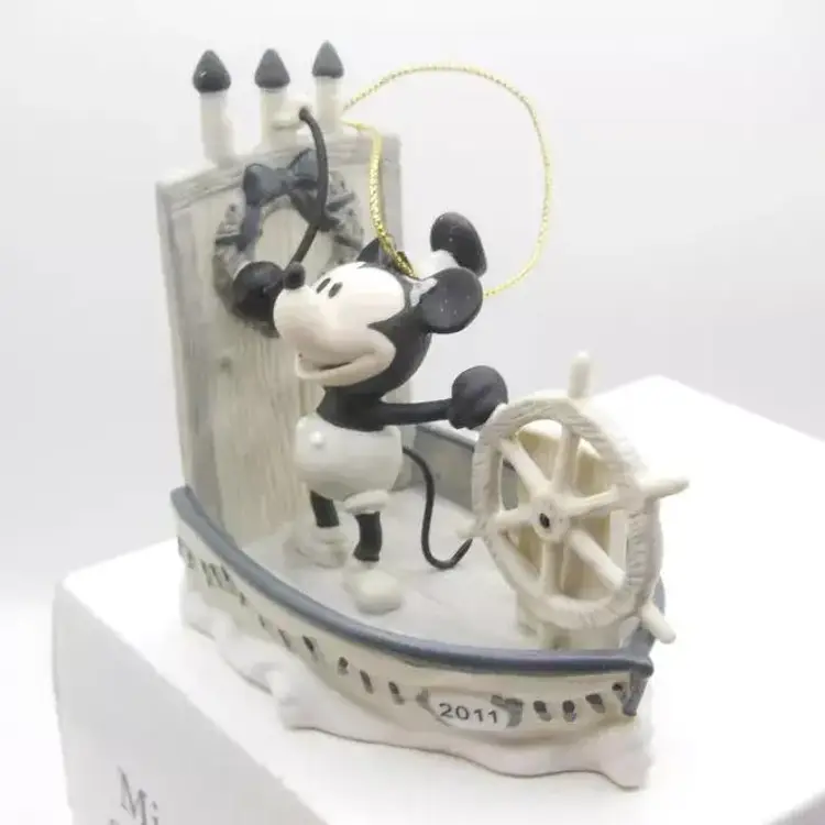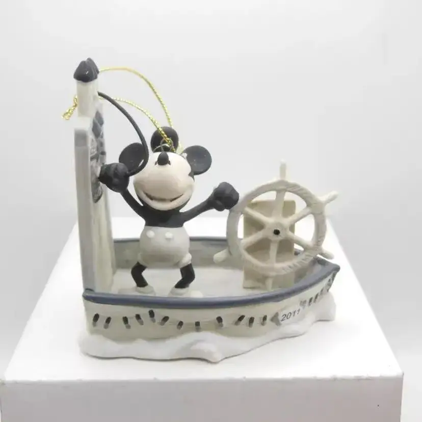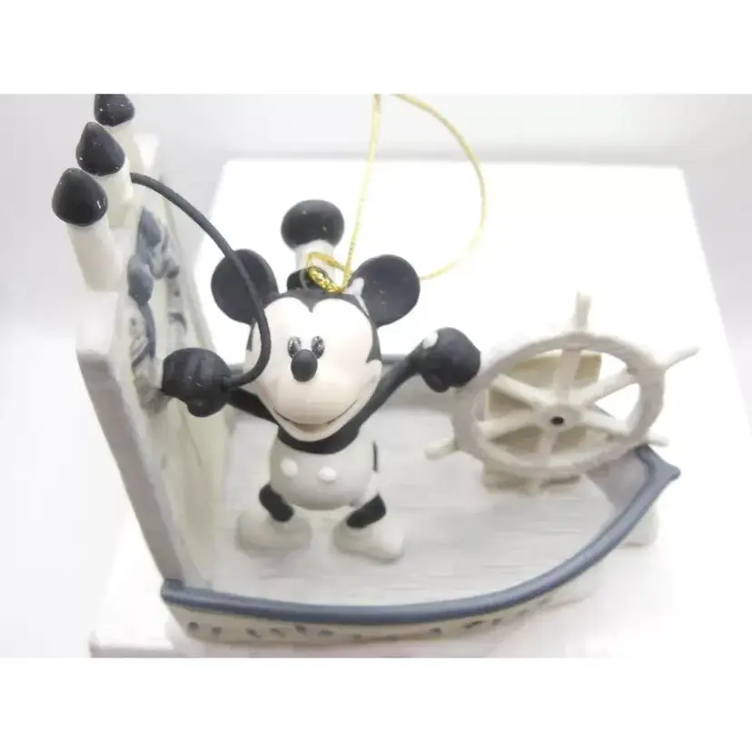 This Disney Early Moments 2011 Mickey Mouse Steamboat Willie Ornament is a must-have for any Disney fan or collector. The ornament is brand new and comes in its original box. It features Mickey Mouse in his iconic Steamboat Willie outfit and is made of high-quality porcelain and painted in tones to look like the old cartoon. This is a great addition to any collection and is perfect for the holiday season.