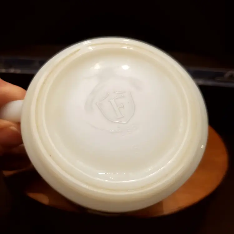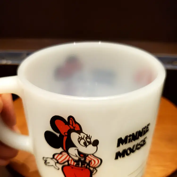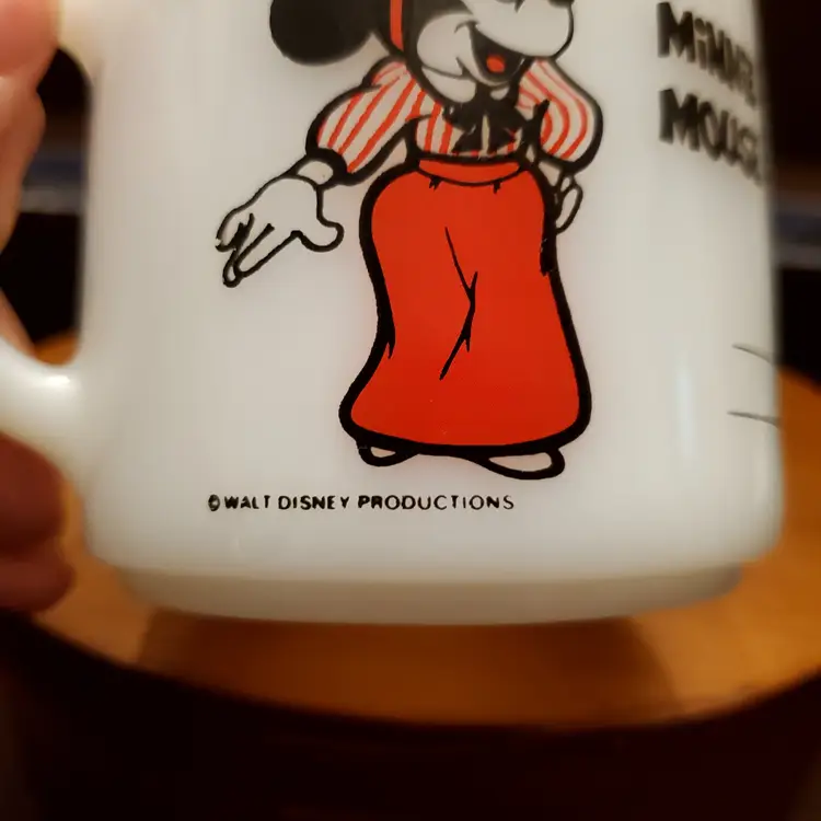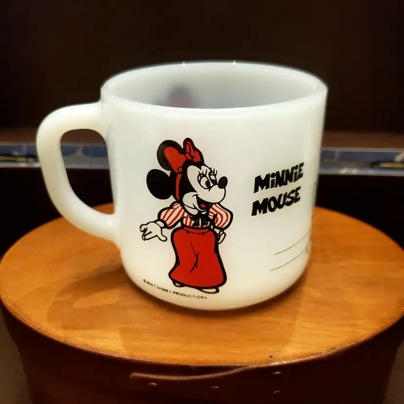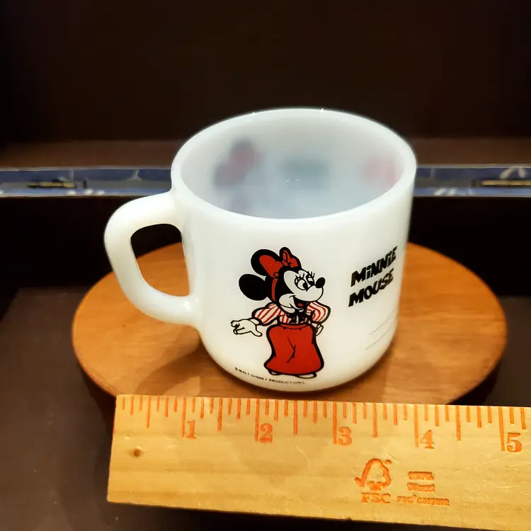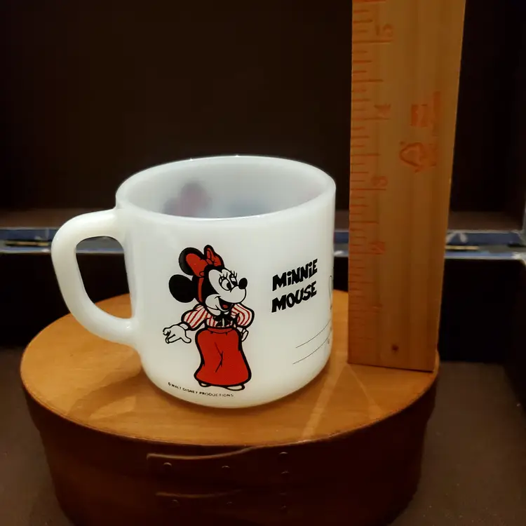This is a cute vintage milk glass mug made by fire king. Approximate measurements in photos. No chips or cracks. Graphics are in great condition.