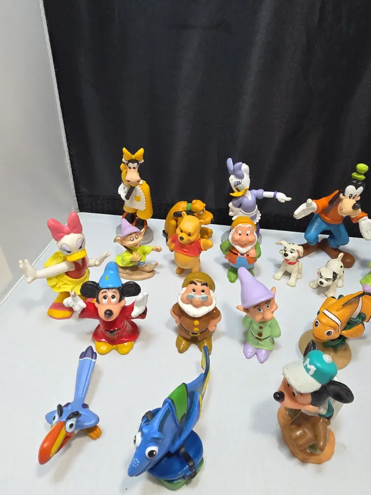 Description Mixed lot of 25 Disney PVC figures in assorted sizes and styles. This is a random mixed group featuring various Disney characters, animals, and figures from different eras. Includes a mixture of vintage and modern pieces. Figures vary in pose, scale, and design and are suitable for play, display, crafting, or collection building. Sold as a mixed lot exactly as shown.