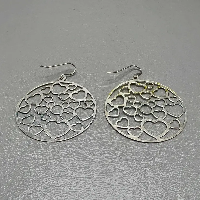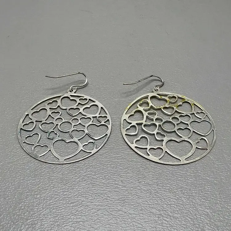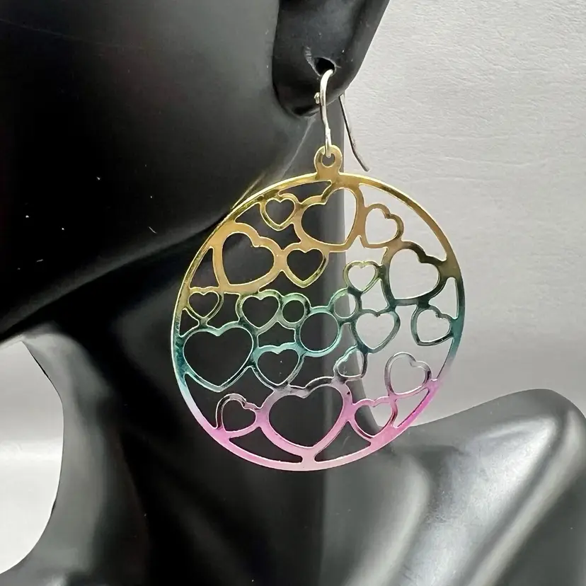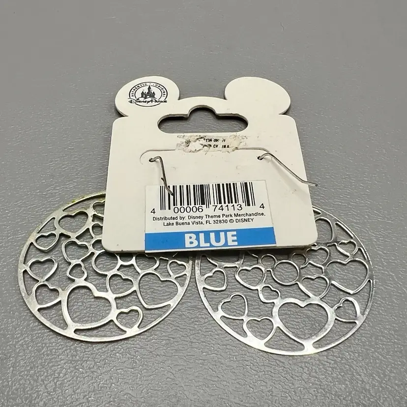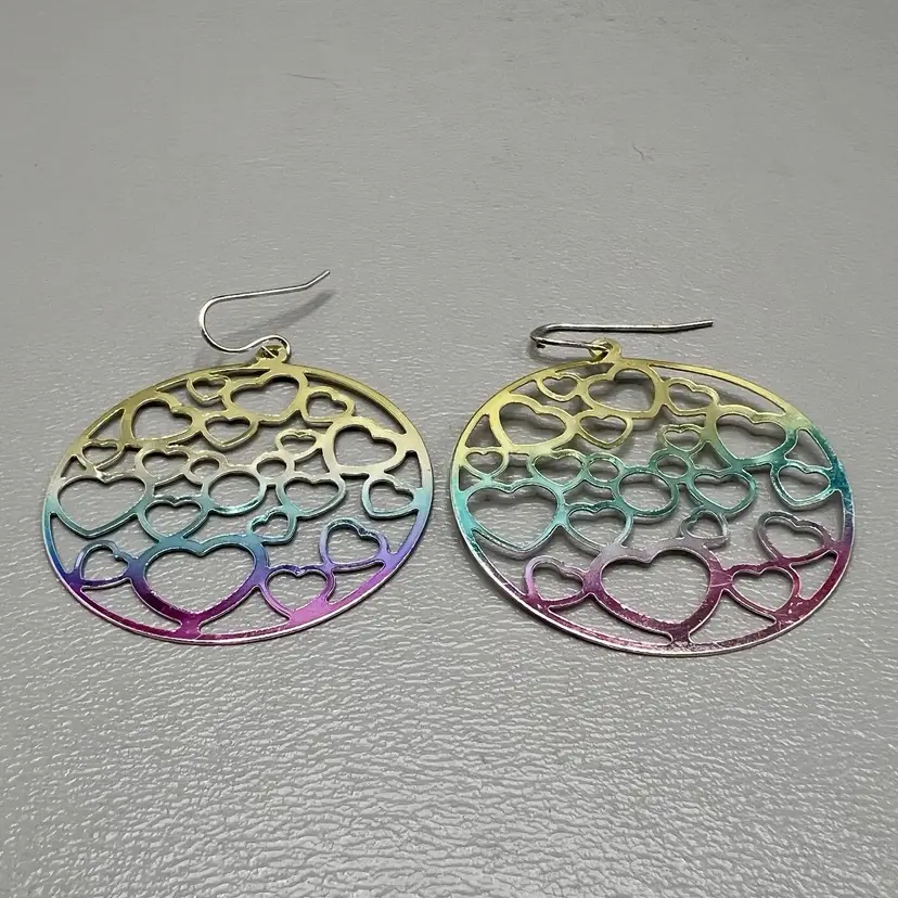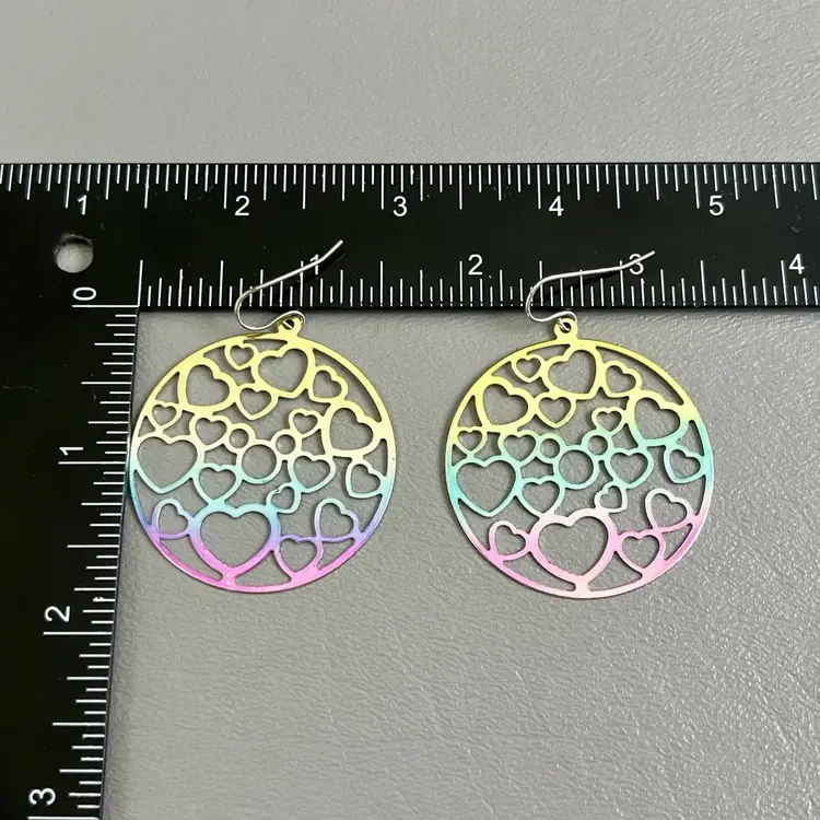 Disney Parks Hidden Mickey Heart Cutout Dangle Earrings Iridescent Pastel 1.5" Round Openwork Design Fish Hook Ear Wires On Card