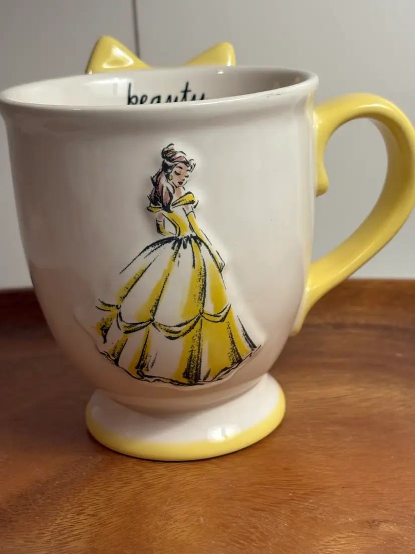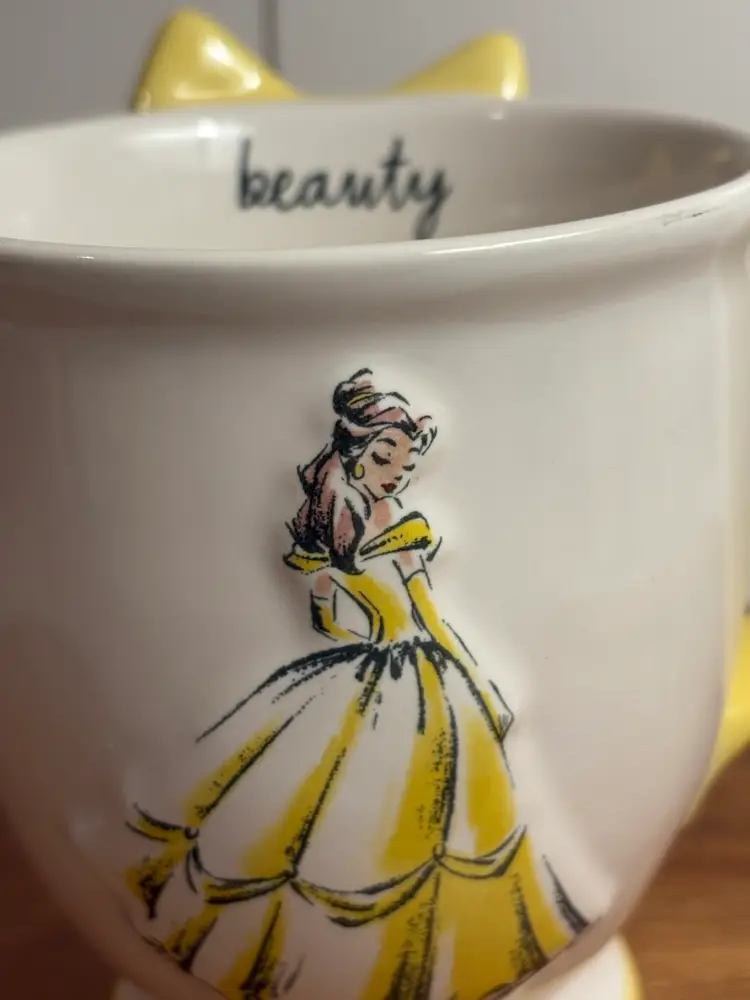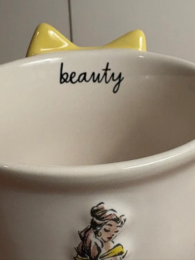 Disney Rae Dunn Beauty & The Beast Belle Bow Oversized Mug is a beautifully crafted ceramic mug featuring the beloved character Belle from Disney's Beauty and the Beast. This multicolor mug is perfect for all occasions and is an original piece produced with art pottery techniques in China. It is a must-have for collectors and fans of Disney franchises, adding a touch of magic to your morning cup of tea or coffee. The Rae Dunn brand brings a touch of contemporary style to this charming piece that will delight both unisex adults and Disney enthusiasts alike.
