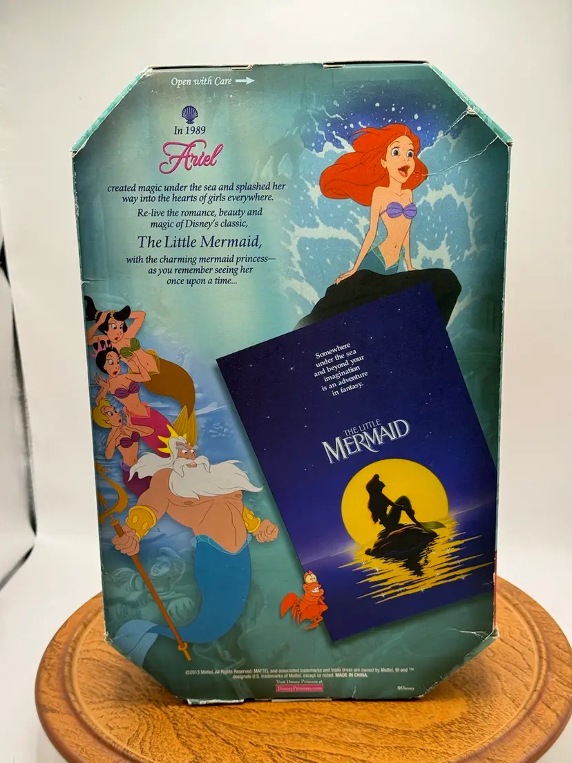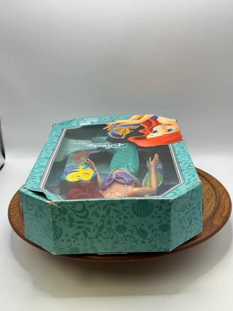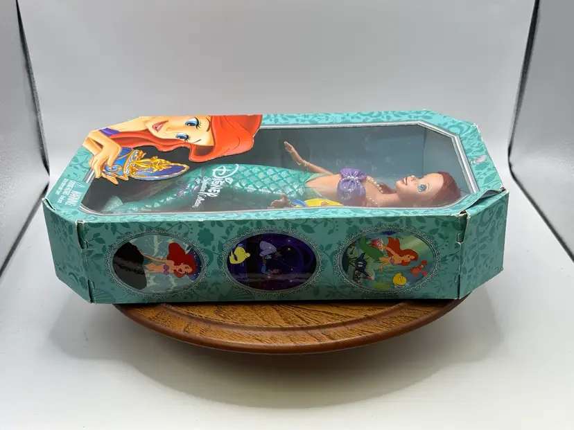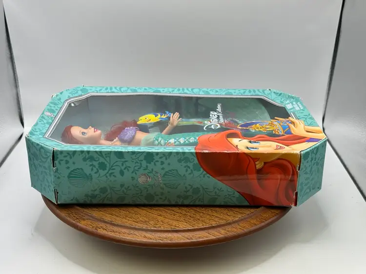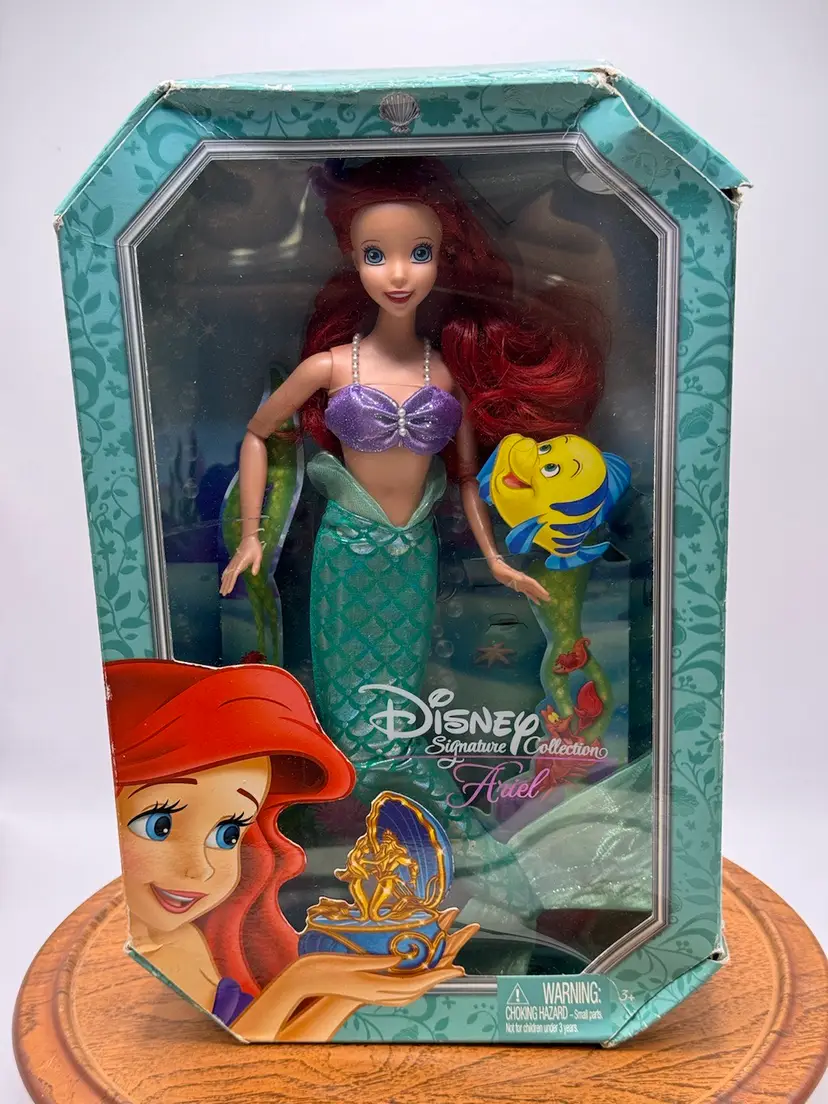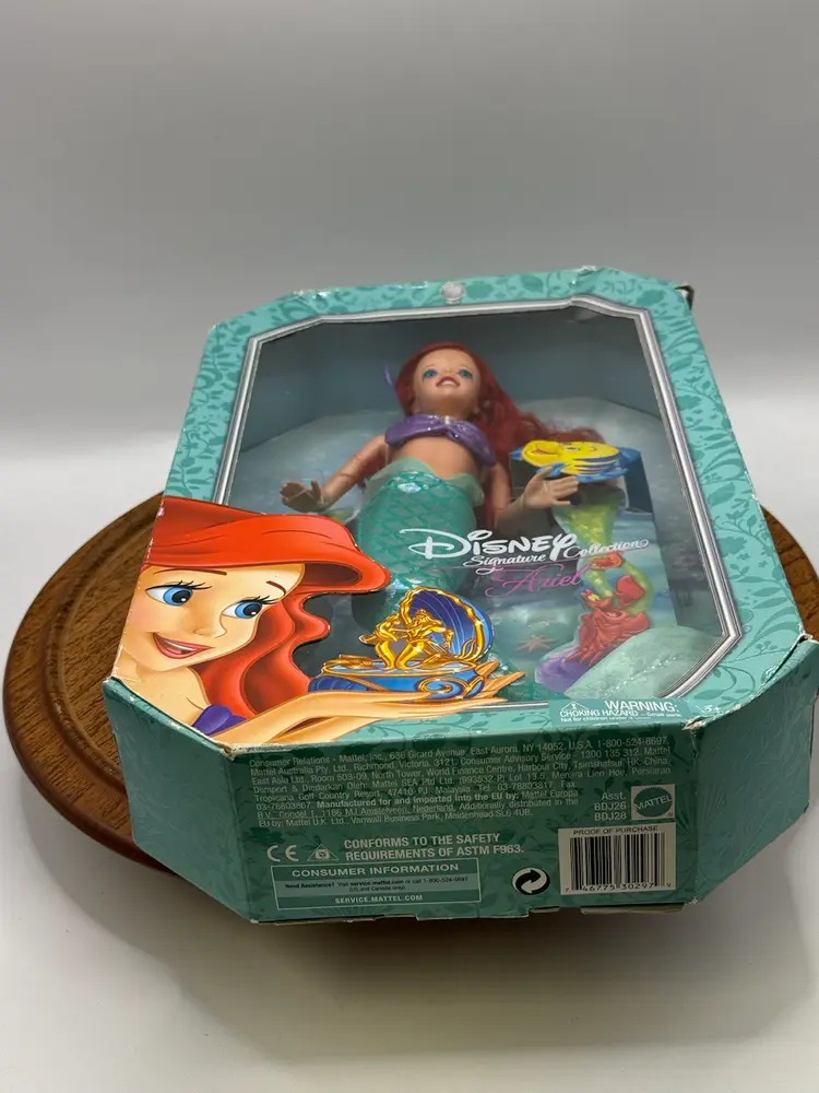 This Disney Signature Collection Ariel doll is a must-have for any Mermaid Series fan. With a 10-inch doll size, this original Mattel doll features a girl doll gender and blue eyes. The doll's hair is a vibrant red color, adding to her overall charm. This doll is an original licensed reproduction from Disney and comes in its original packaging.