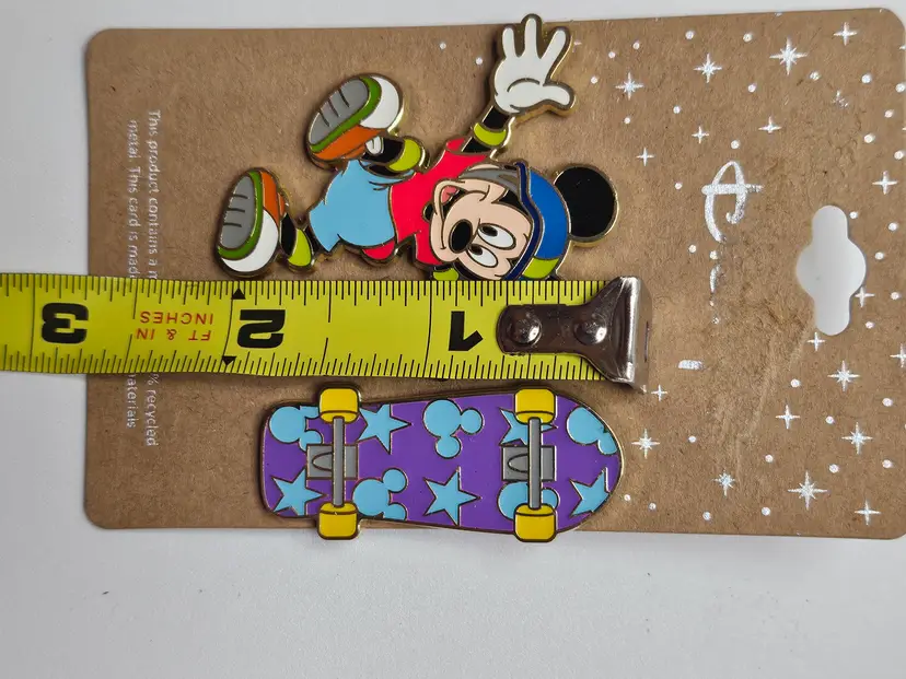 BoxLunch exclusive Disney skateboarding Mickey Mouse and skateboard pin set. This set features two pins, one of Mickey Mouse skateboarding and the other of a skateboard. These pins are brand new and have never been used. They are perfect for any Disney or skateboarding fan and make a great addition to any pin collection. The pins are made in China and are part of the Disneyana collectibles category. Get this set while it's exclusive and add it to your pin collection today!