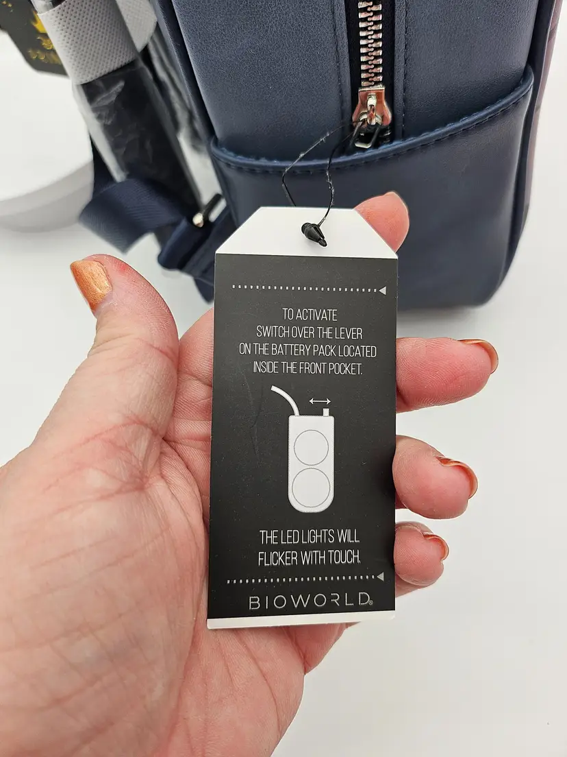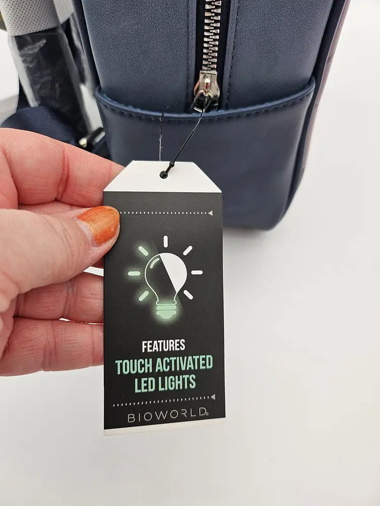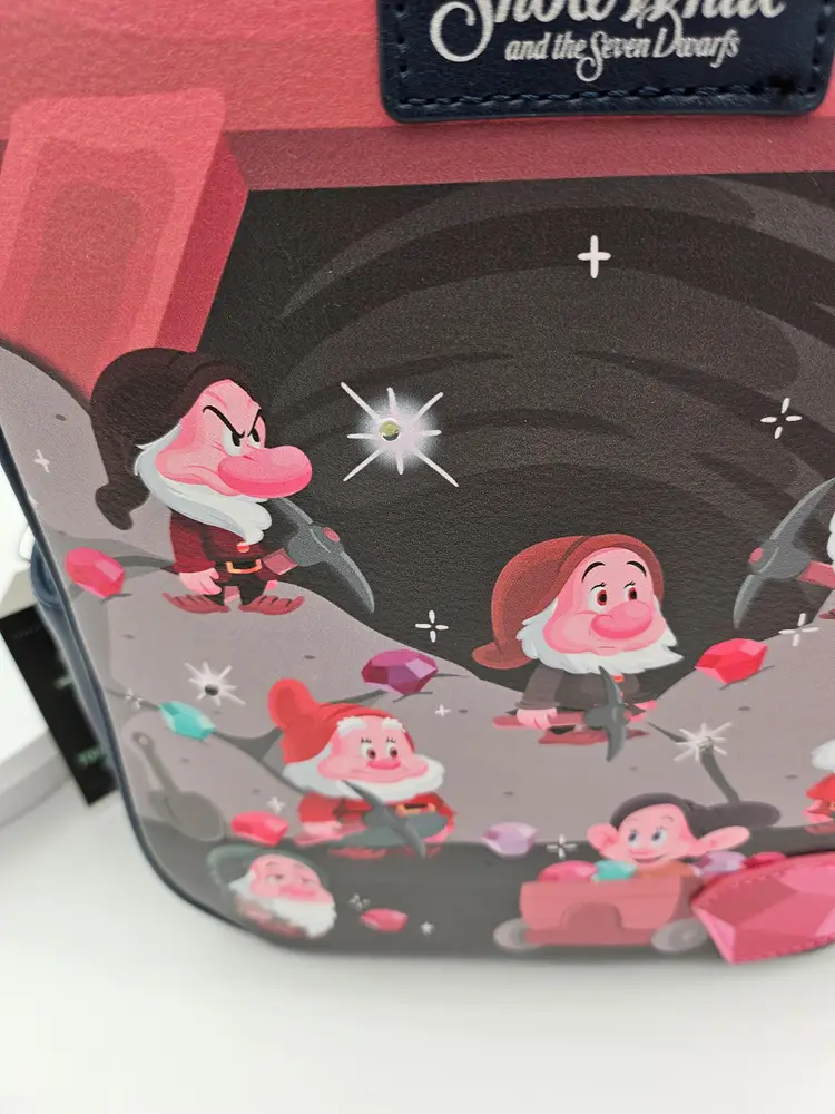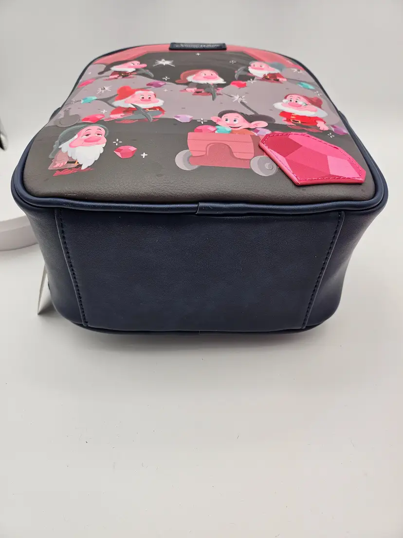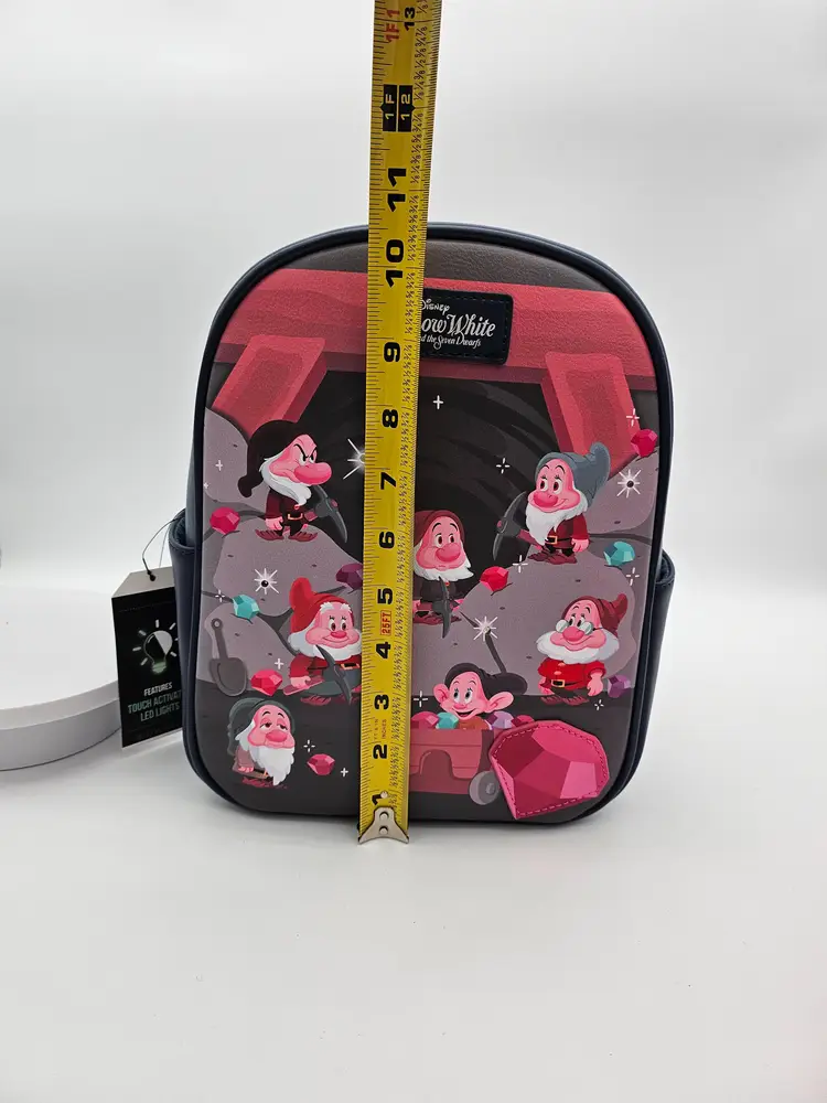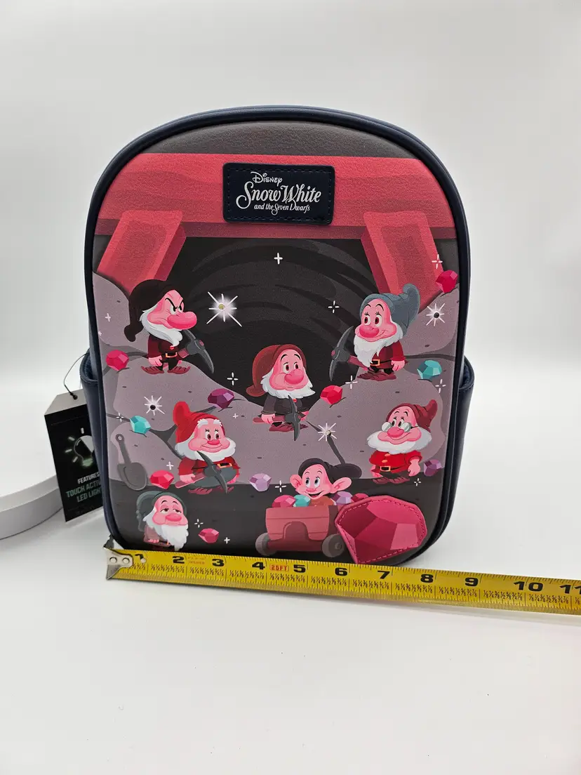 This mini backpack is the perfect accessory for any Disney fan. Featuring LED lights against the Seven Dwarves diamond mine background. The faux leather and polyurethane exterior material make it durable. The backpack is part of the Bioworld Disney Princess product line and is perfect for travel or casual occasions. The zip closure ensures that all your belongings stay safe and secure.