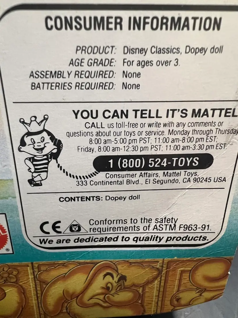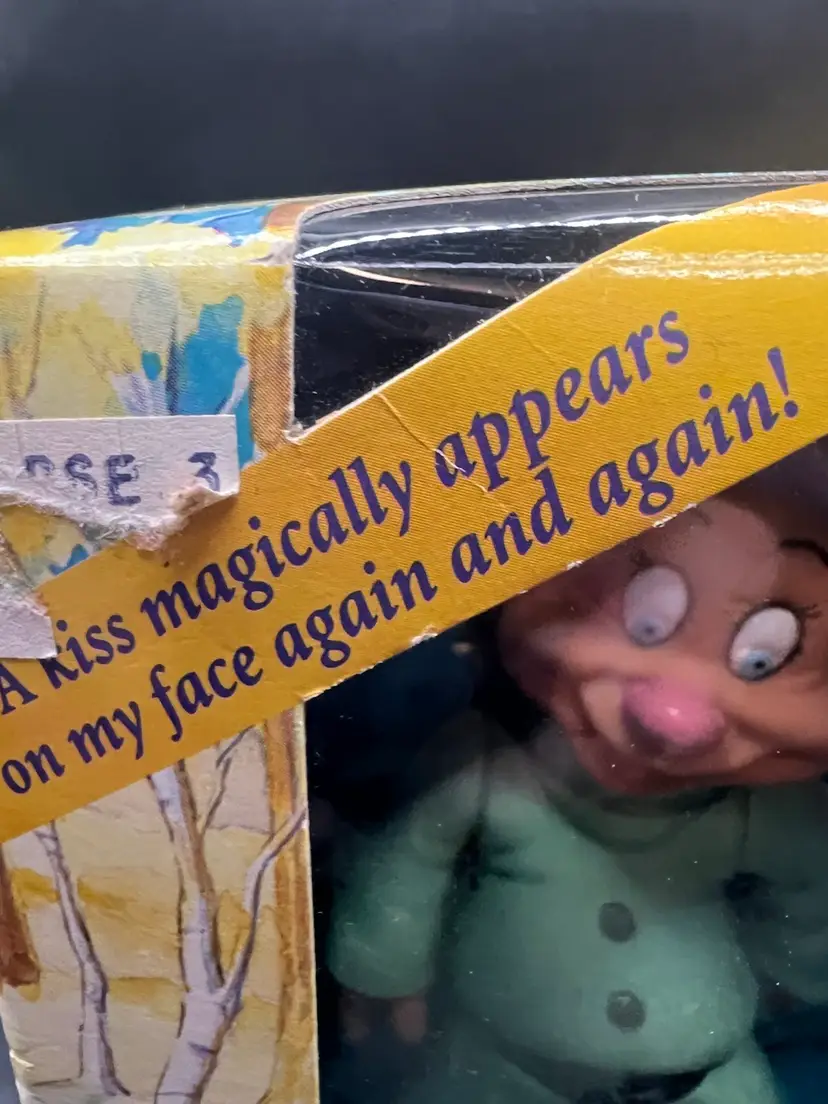 Dopey of Disney Snow White and the 7 dwarfs “ a kiss magically appears on me” with box open original box not used