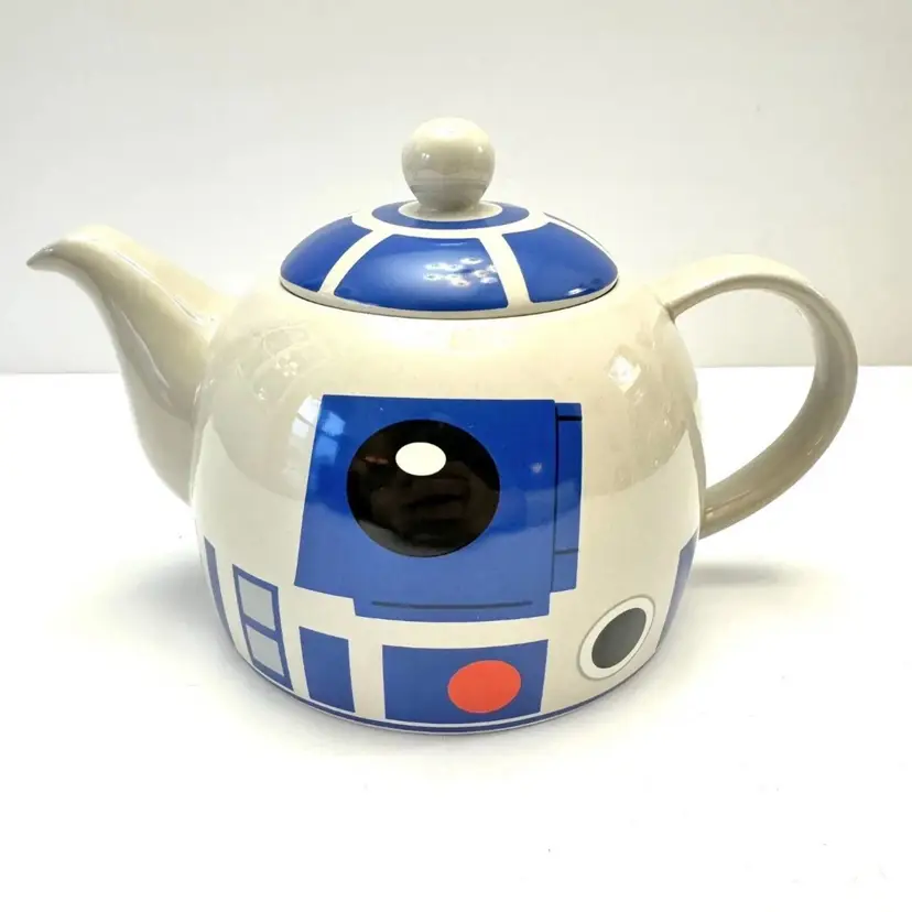 This original Disney Star Wars R2-D2 ceramic teapot is a must-have collectible for Star Wars enthusiasts. The teapot features R2-D2, a beloved character from the IV: Star Wars movie. It is made in China and is in has a small chip on the spout. The teapot is perfect for serving tea or as a decorative item in your collection. It is an official Disney product and is part of the Star Wars franchise. The teapot is not signed and belongs to the Science Fiction & Horror genre.