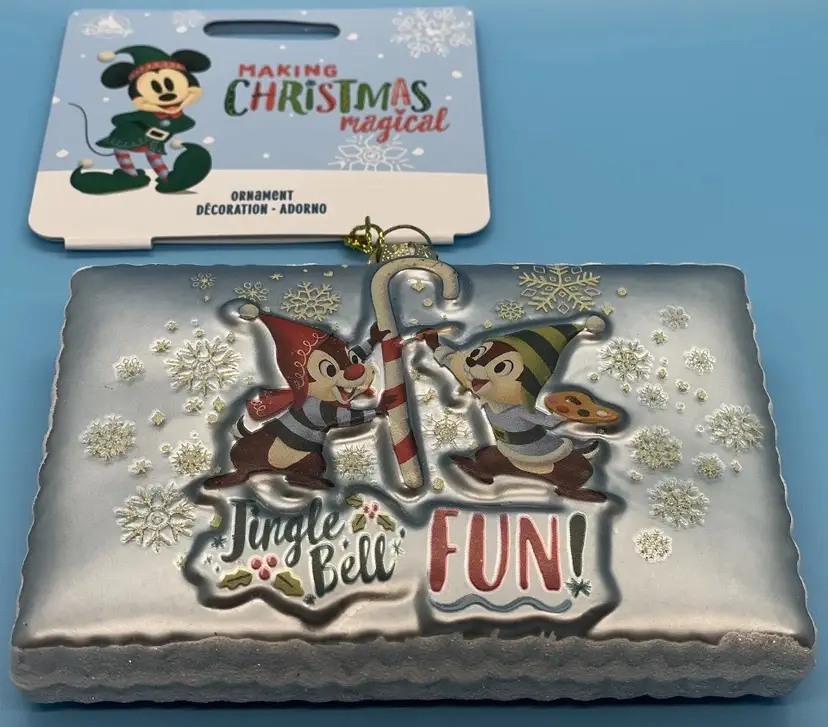 Disney Store Chip 'n Dale Christmas Holiday Blown Glass Postcard Ornament 5”x3”