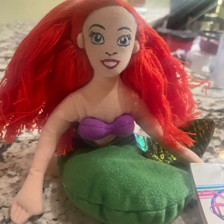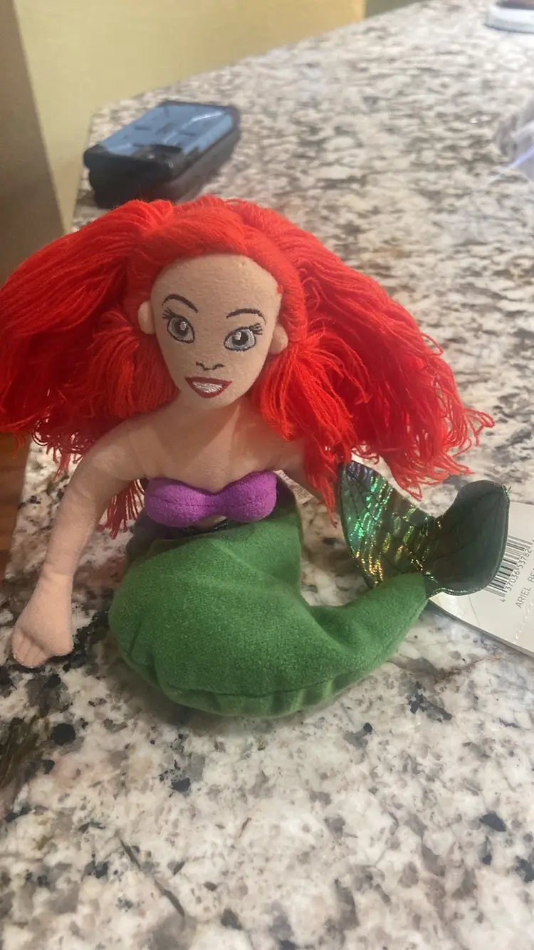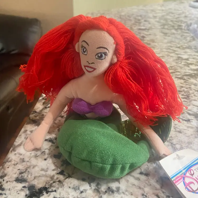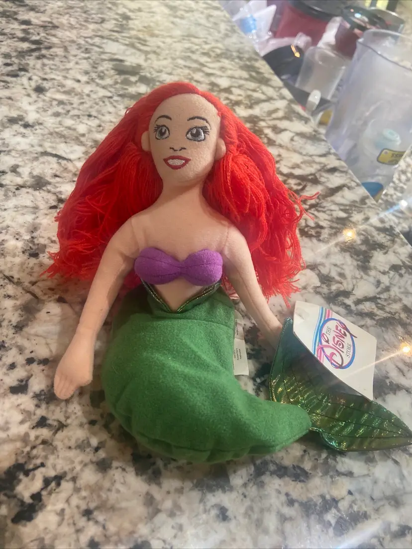 Vtg Disney Store Exclusive The Little Mermaid Ariel 7" Bean Bag Plush. Tag still attached.