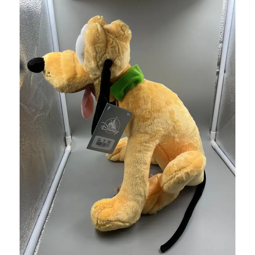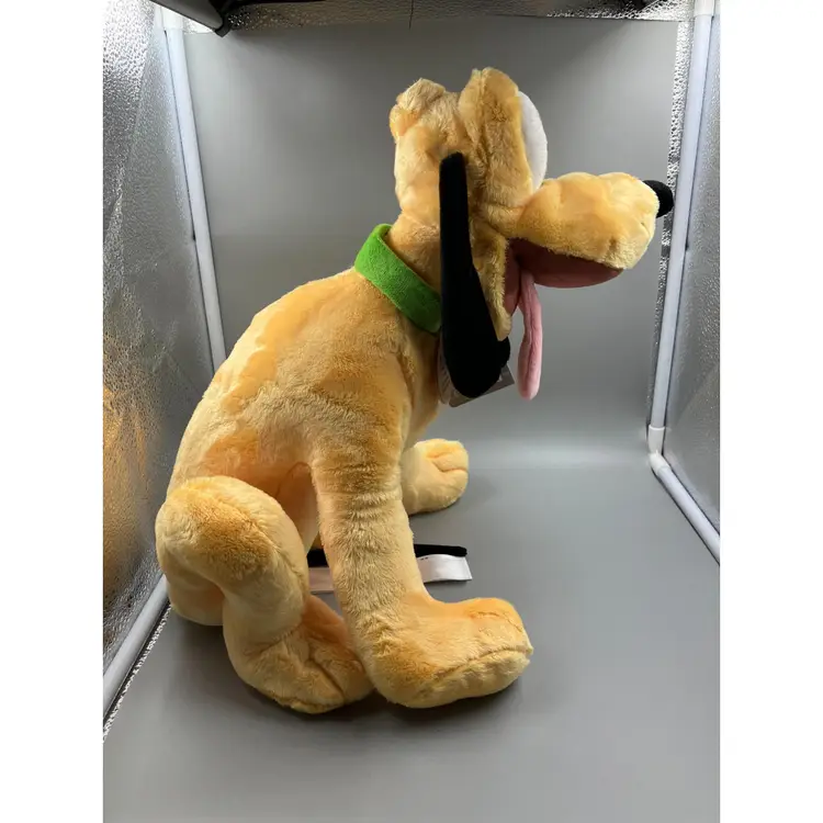 Detailed plush sculpting Embroidered features Furry textured fabric Soft fill Floppy ears and tongue Tail Collar