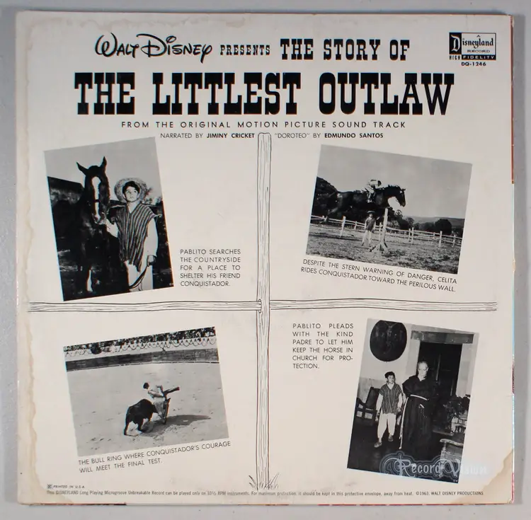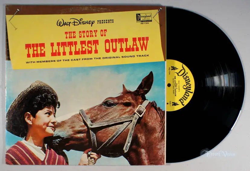 Vinyl plays with crackles (play-graded). Cover looks great; a few creases near edges; light-scuffing and surface impressions (front/back); slight discoloration with darker discoloration spots, on back. Inner-sleeve is original (Disneyland ads); bottom seam partially split. Spine has no text and shows mild-wear. Minor shelf-wear along top/bottom-edge; some wear to corners. Opening is crisp with signs of light use and few divots. (Not a cut-out.)