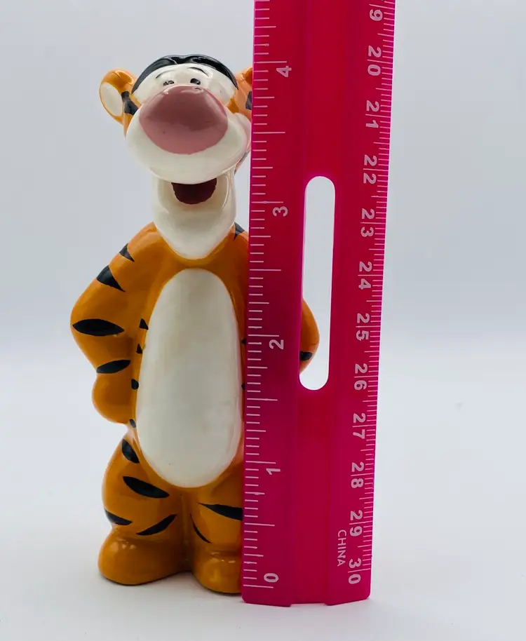 4” tall He has marker on the bottom of his feet. I tried to get it off with no luck.