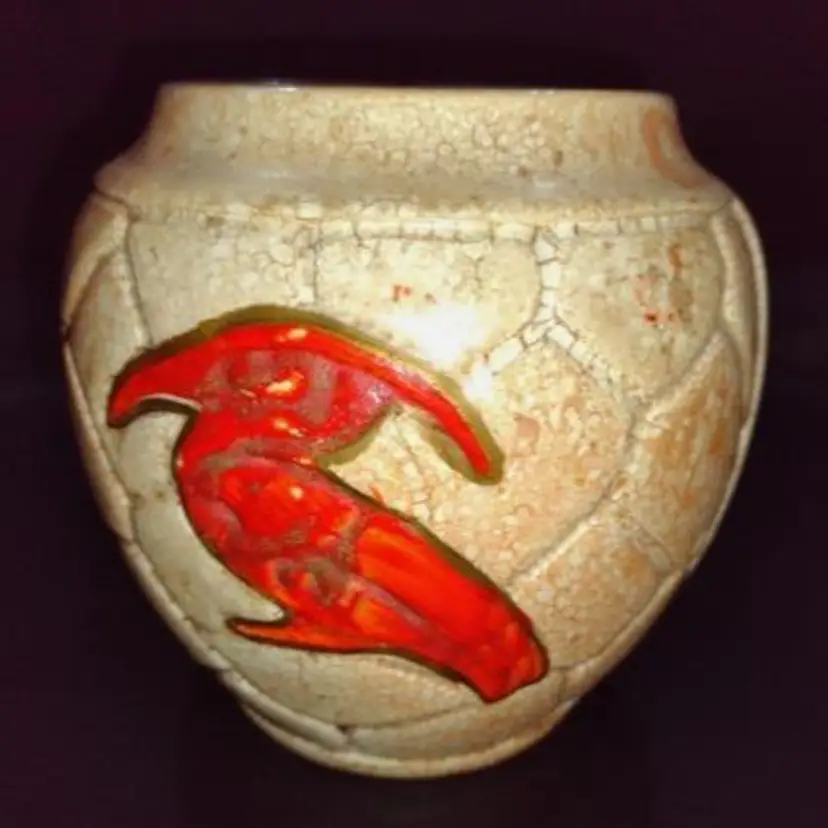 Ditmar Urbach Czech “Alienware” Pottery Planter W/Bird Design. This is 5.5 inches high and 4 inches wide.