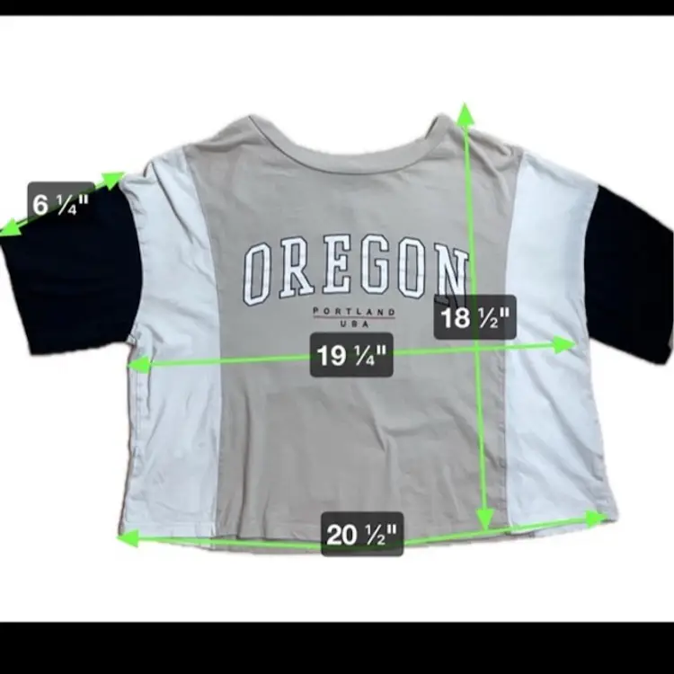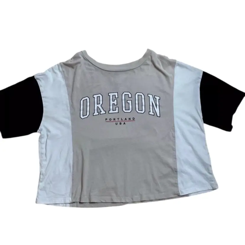 Measurements in photos Divided By H&M Size Small Crop Top Graphic T Shirt Portland Oregon Black Beige