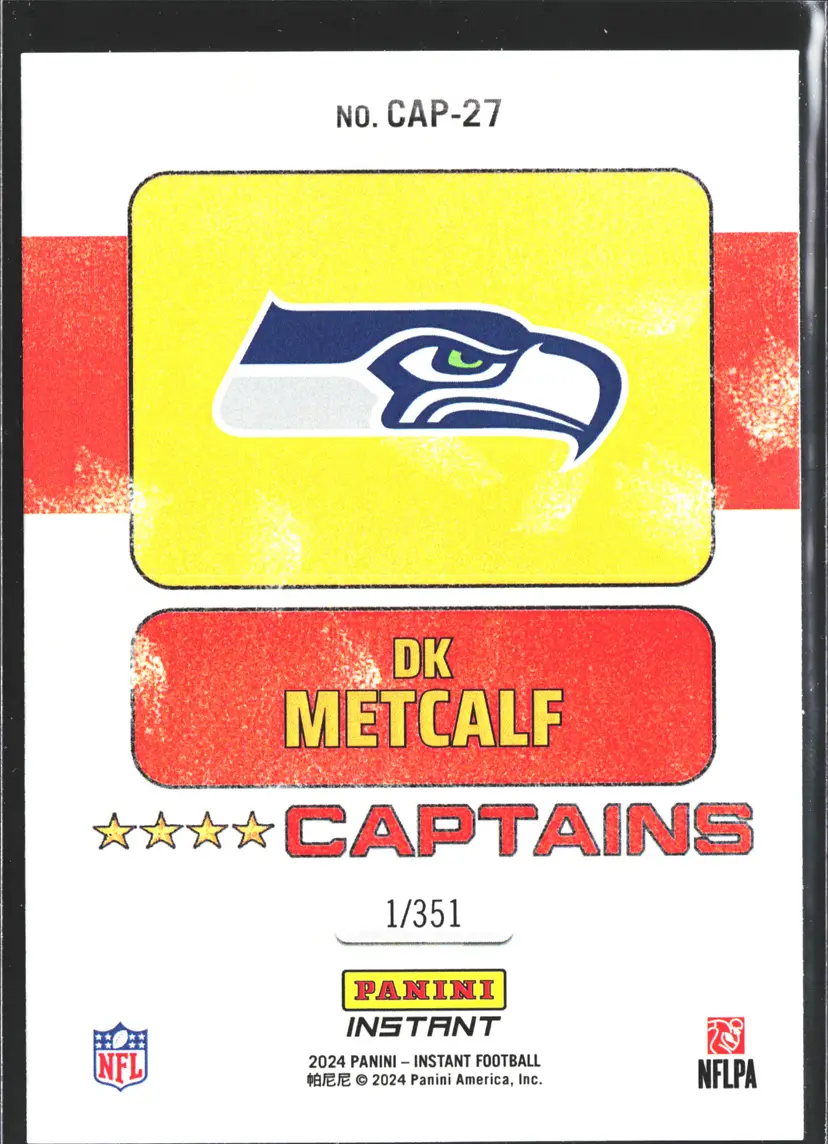 1st time buyer? Get $5 Off with code DISTRICT5 at checkout! Card as shown. All cards $20 and under ship PWE via lettertrackpro [https://www.letter-track.com/registerap.asp?AFID=8757] Sport: Football Type: Sports Trading Card League: National Football League (NFL) Team: Seattle Seahawks Manufacturer: Panini Player/Athlete: DK Metcalf Set: 2024 Panini Instant NFL Features: Limited Edition, Serial Numbered Season: 2024 Parallel/Variety: Limited Autographed: No Year Manufactured: 2024 Vintage: No Graded: No Card Condition: Near Mint or Better Material: Card Stock Original/Licensed Reprint: Original Country/Region of Manufacture: United States