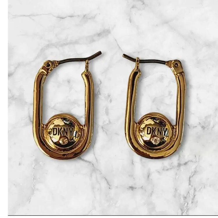 Stunning DKNY hoop earrings oval-shaped featuring a hinged closure