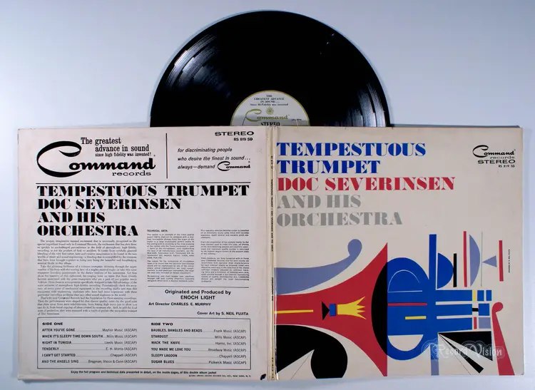 Tempestuous Trumpet, by Doc Severinsen, is a jazz album celebrated for its high-fidelity sound, characteristic of the label's audiophile-focused demonstration discs. The album showcases Severinsen's virtuosic trumpet on big band standards like After You've Gone, A Night in Tunisia, Mack the Knife, and Stardust, arranged to highlight his technical brilliance and emotive style. Recorded as big band music declined with rock 'n' roll's rise, it reflects Severinsen's role in preserving the swing era's vitality. Its historical significance lies in its superior recording quality and Severinsen's emerging fame, as he became The Tonight Show bandleader in 1962. While no singles from the album became chart-topping hits, tracks like Mack the Knife, previously popularized by Louis Armstrong, demonstrated Severinsen's skill in reinterpreting jazz classics.