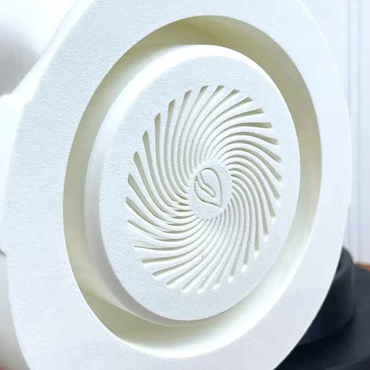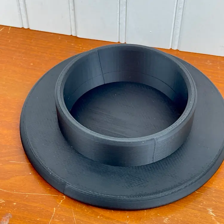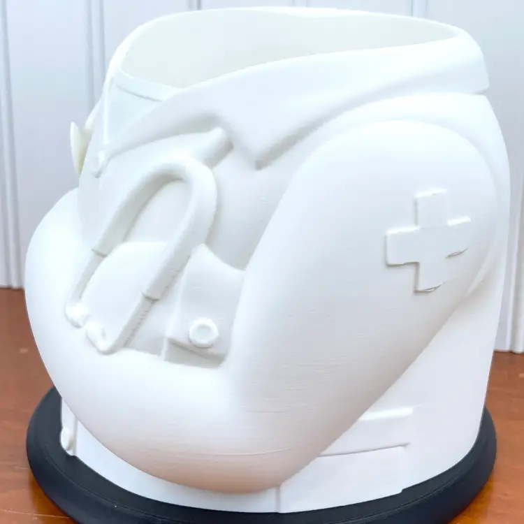 The holder is 3D printed using PLA plastic filament. 3D printing is done by printing layer upon layer of filament to build up and create the print.