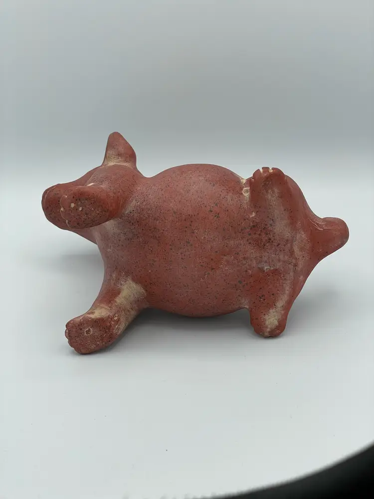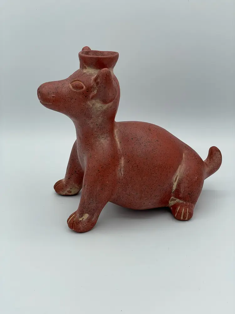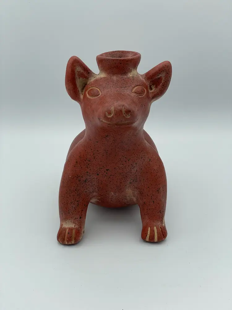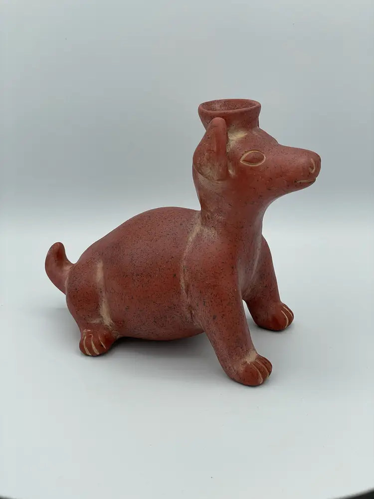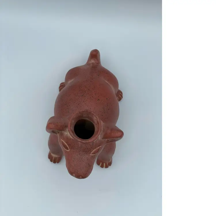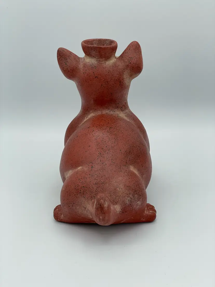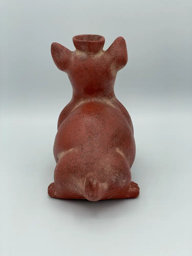 Vintage Dog Clay Flower Vase. 6 1/4" Tall X 8" W. No Chips/Cracks.