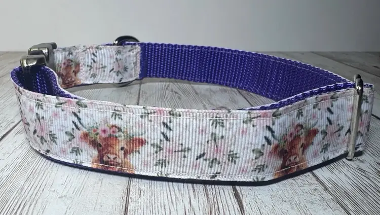 Dog Collar Highland Cow Purple Large Handmade Heavy Duty W/Buckle NEW