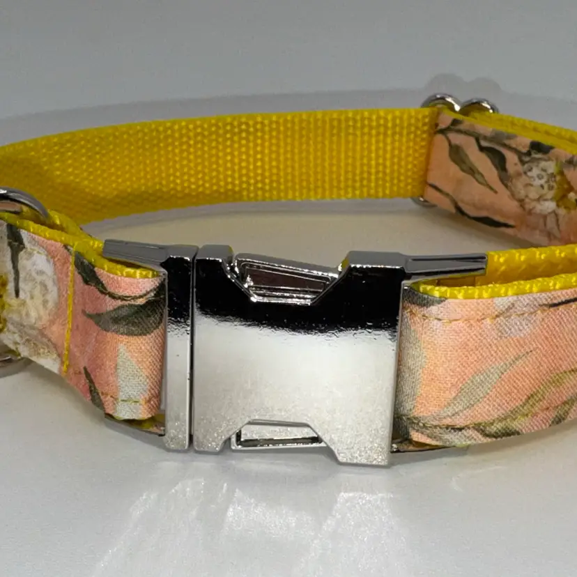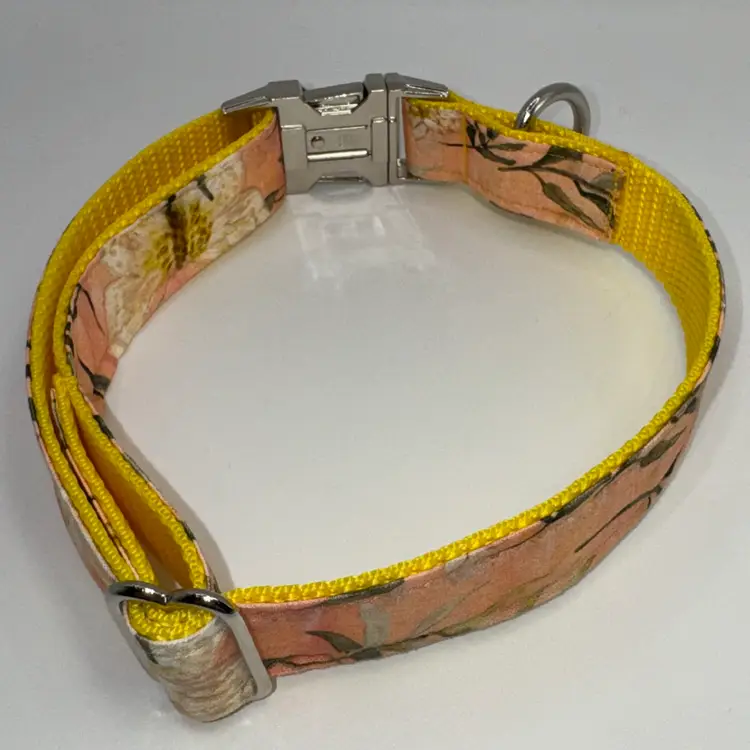 Dog Collar Yellow Butterfly Surprise Large Handmade Heavy Duty Metal Buckle NEW