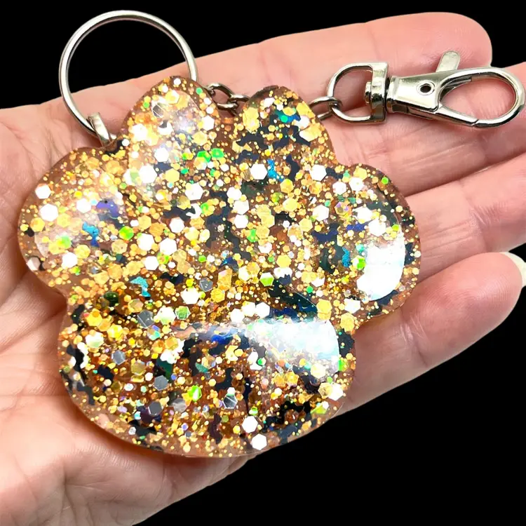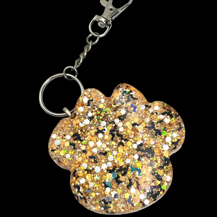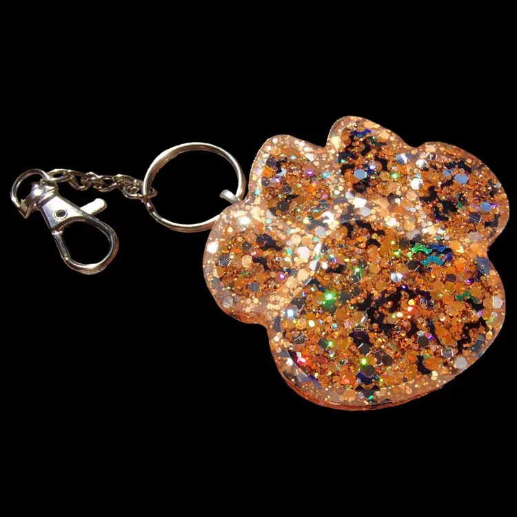 Handmade by me ๐ซถ Sparkling orange glitter with holographic black bat inclusions. Paw toe bean keychain bag clip. Size: 6" overall length; Paw 2-1/2" x 2-1/2" x 3/8"