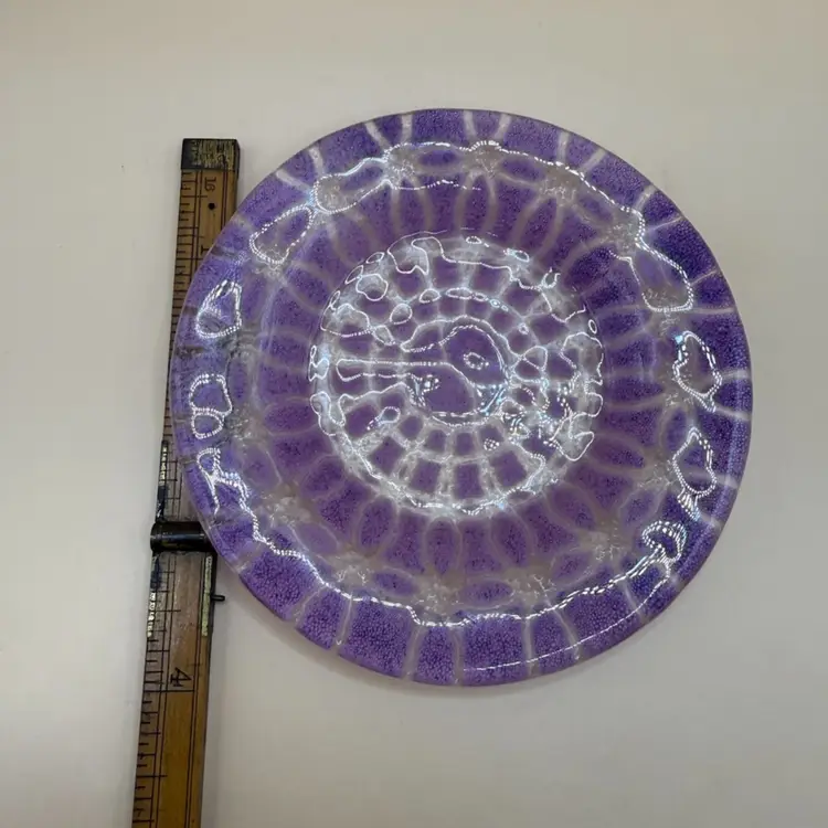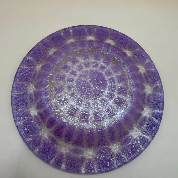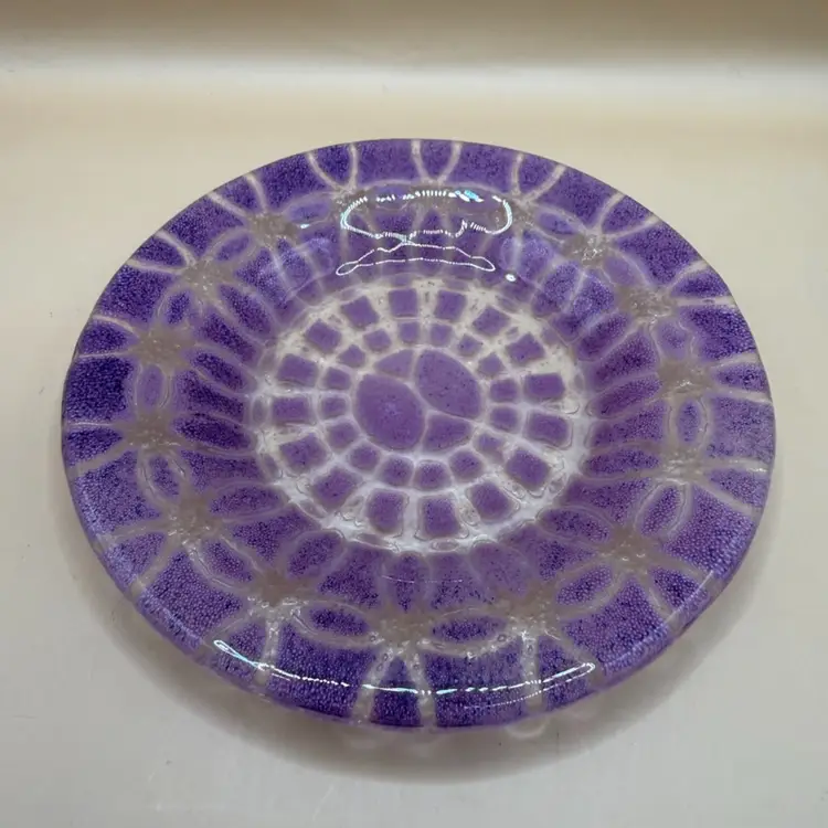 $1 Train Special!! Sydenstricker Signed Purple & Pink Embassy Pattern Fused Glass Trinket Dish 4”