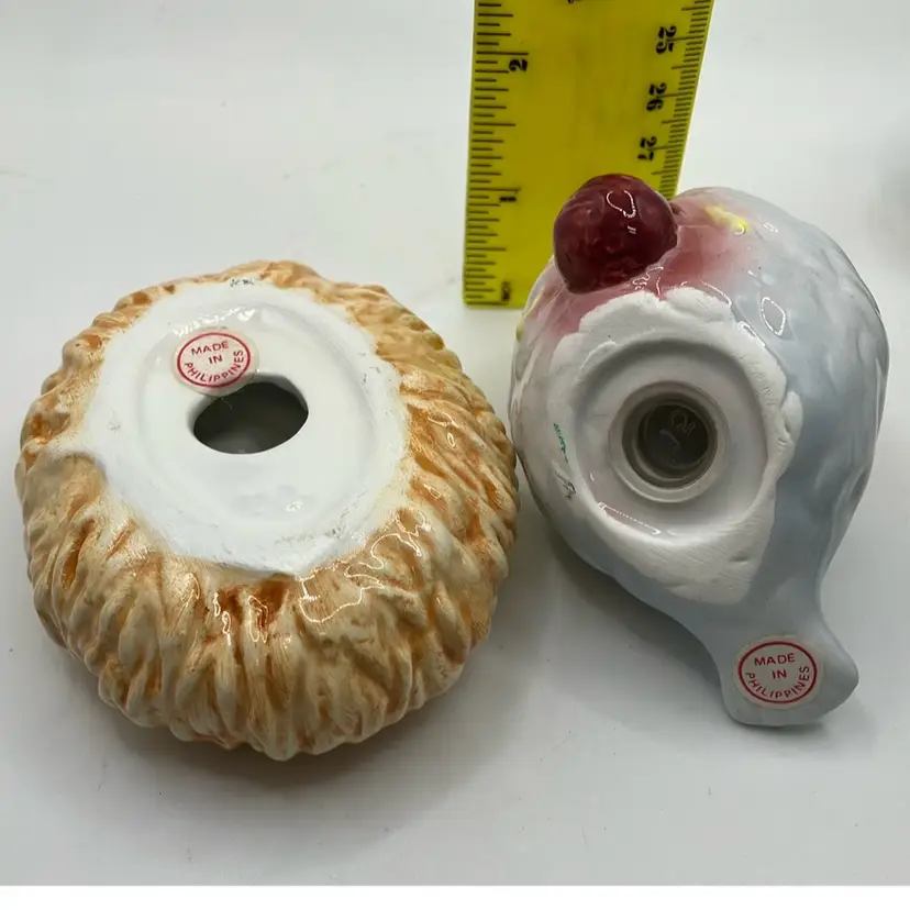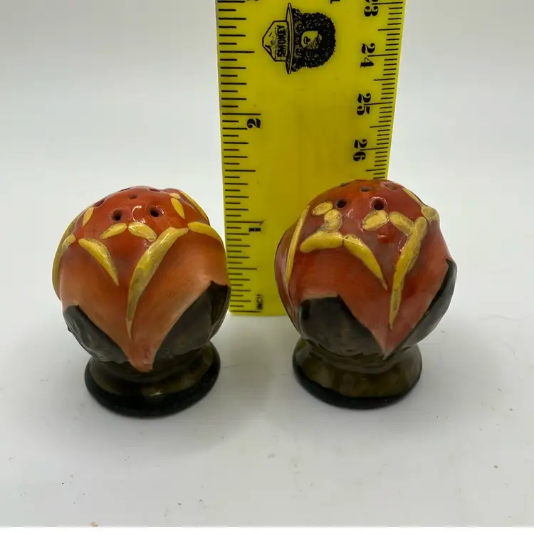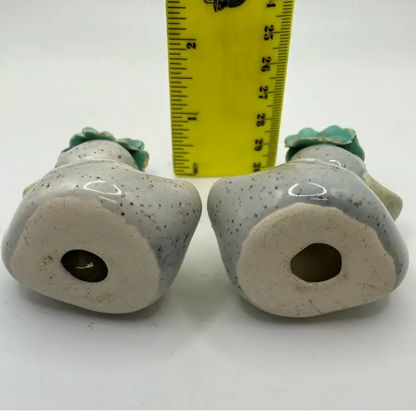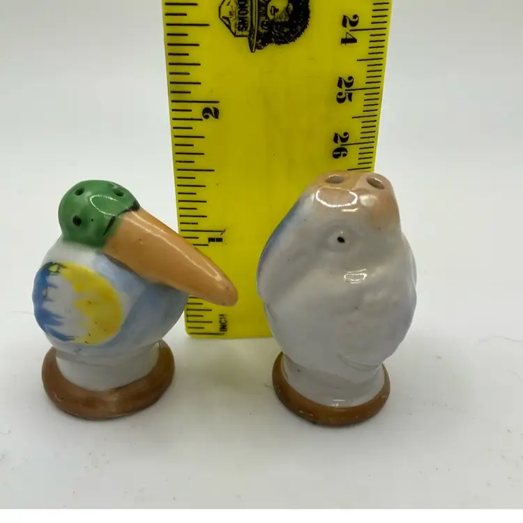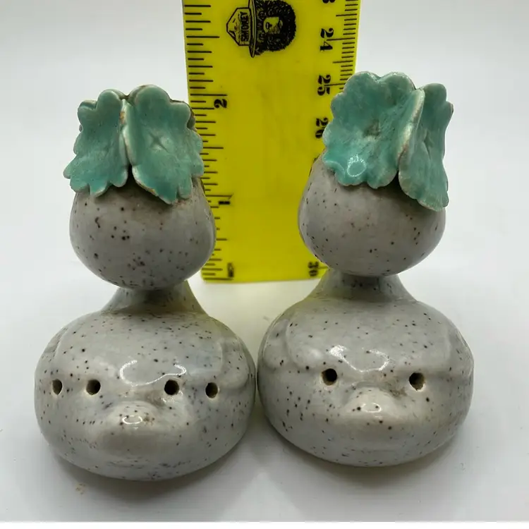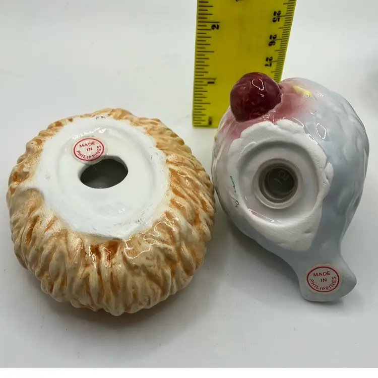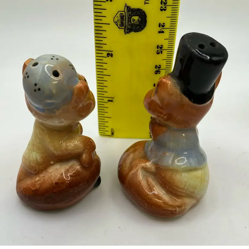 *Fancy Fox and his Fox Lady- both have cork stoppers. No markings. Lady has tiny chip on nose *Wood chefs- have to paint loss, no markings. Hats screw off