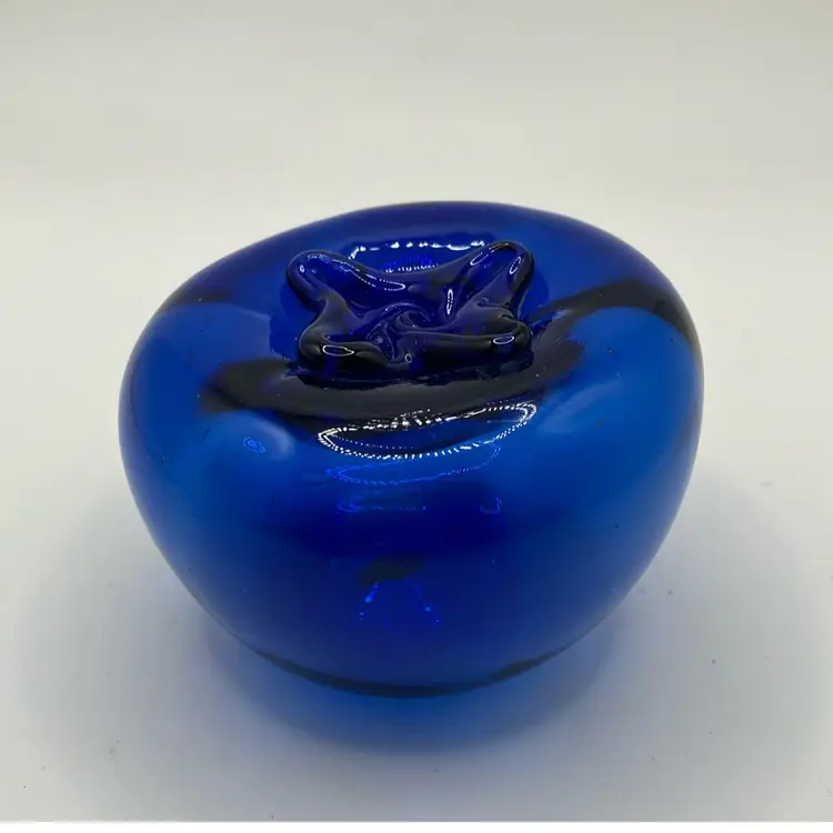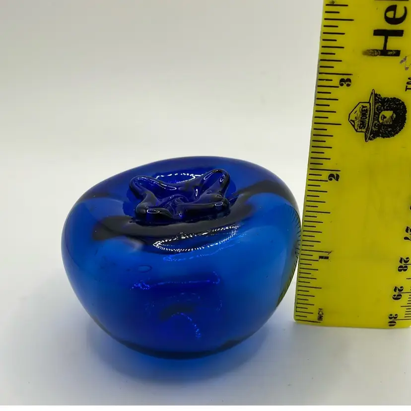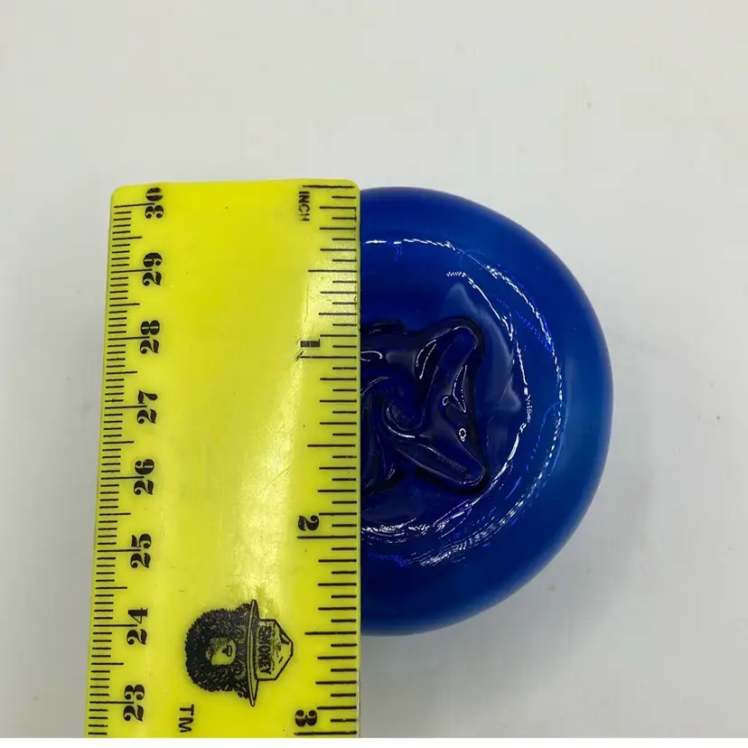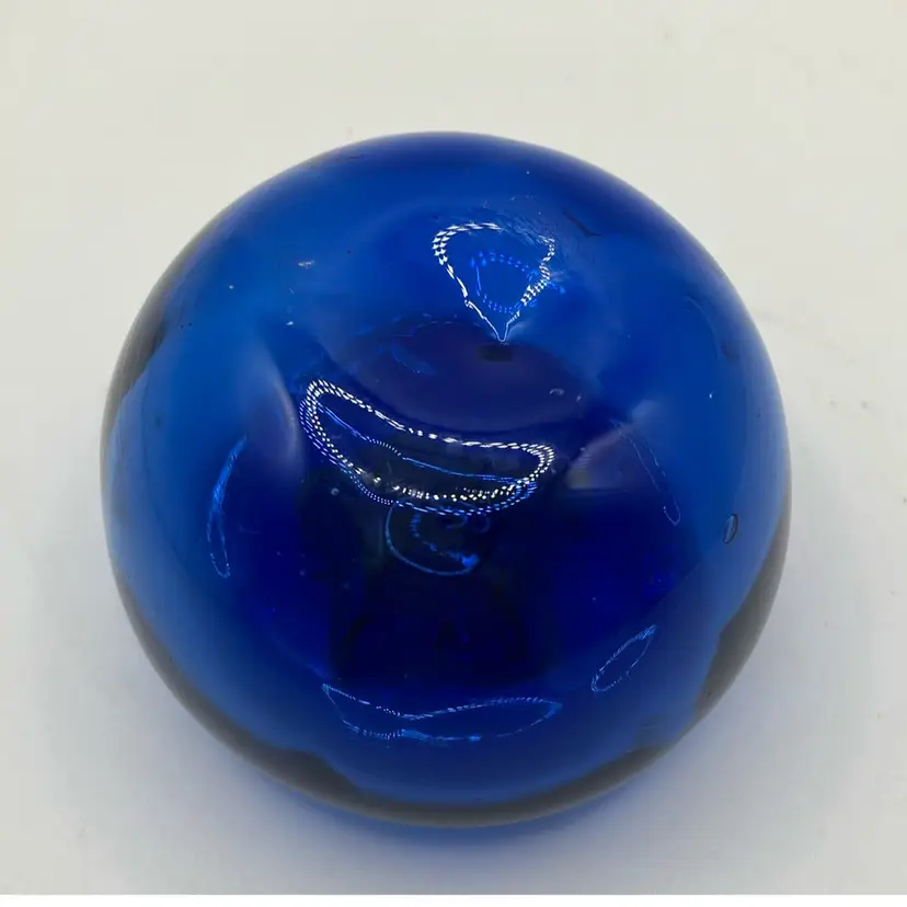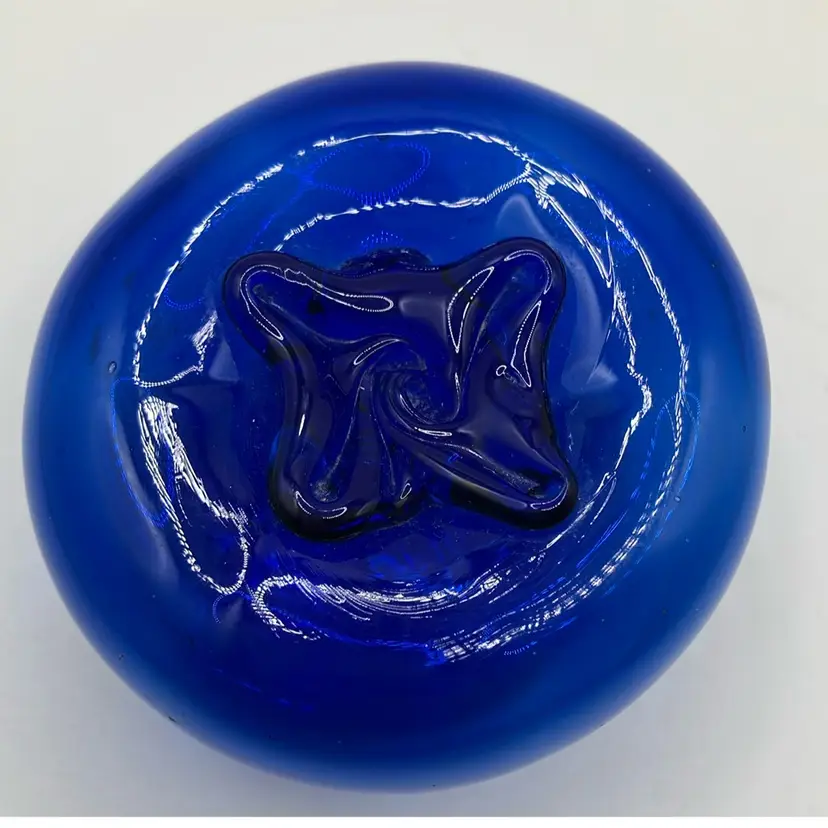 Hollow with nice swirl on the top. Good condition- no chips or cracks. Beautiful cobalt blue color.