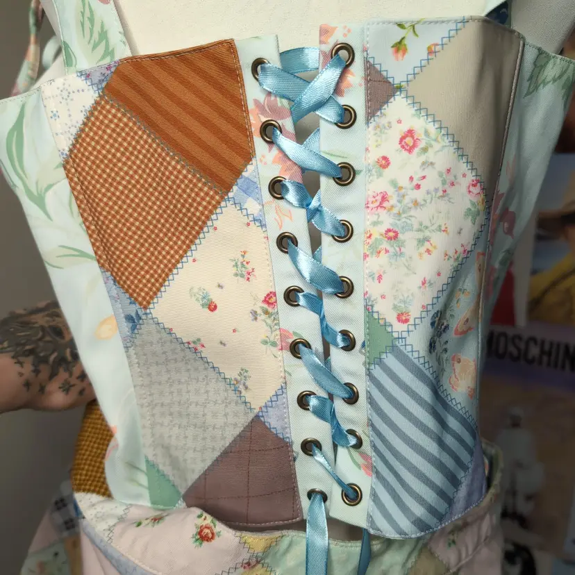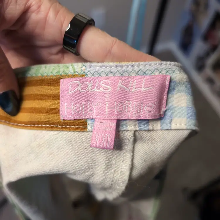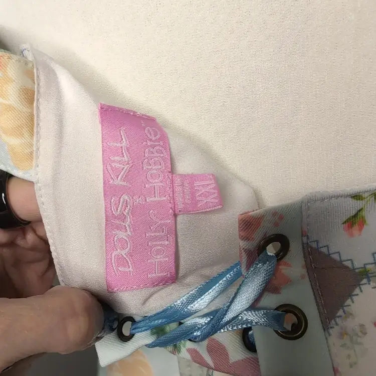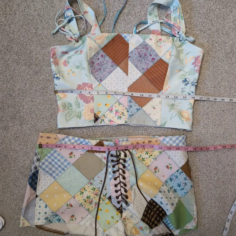 Size xxl, no flaws. Comes with cute corset and lace up shorts. No stretch, polyester fabric.