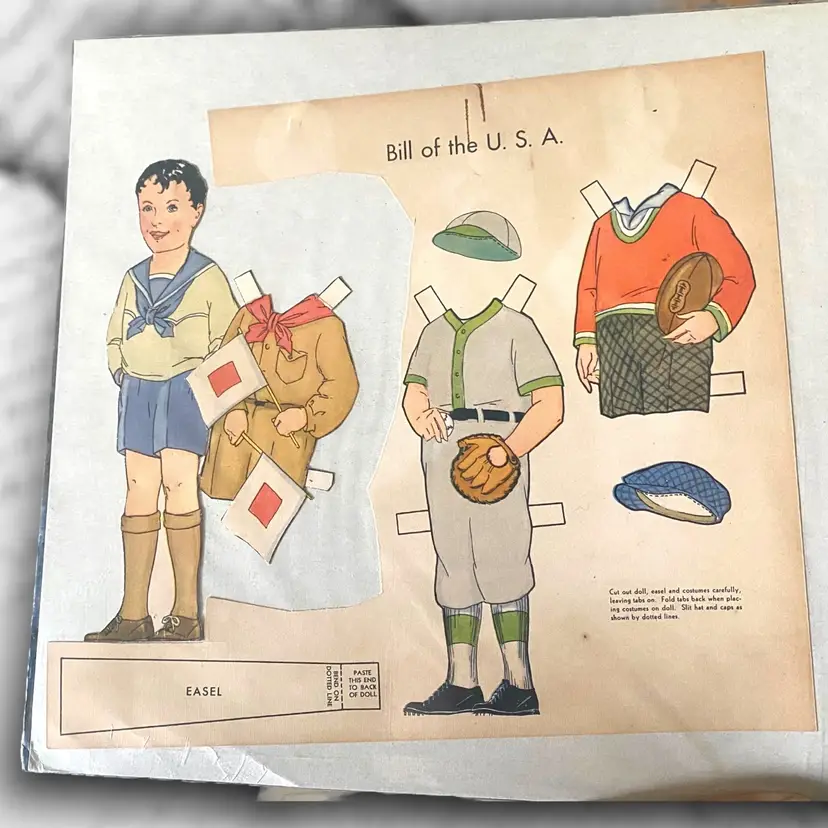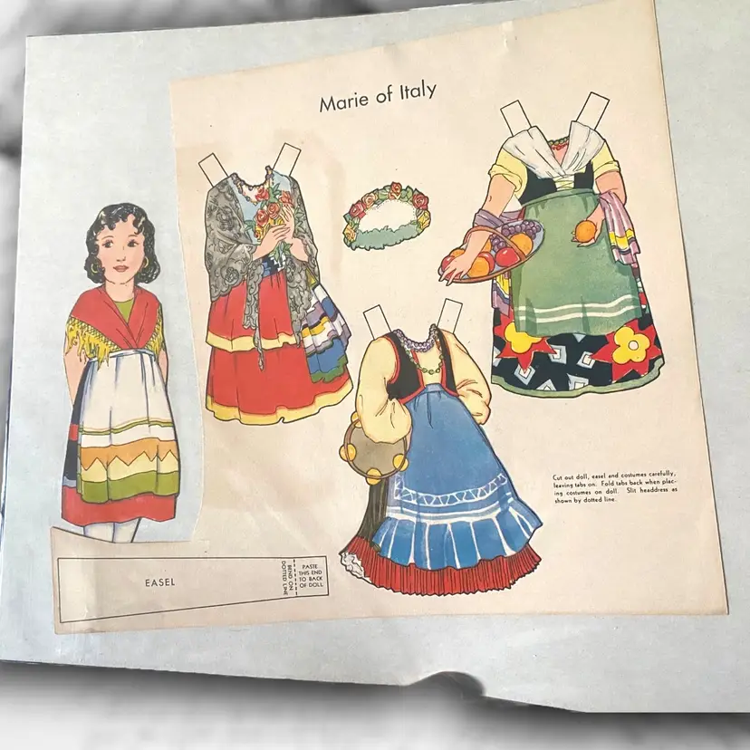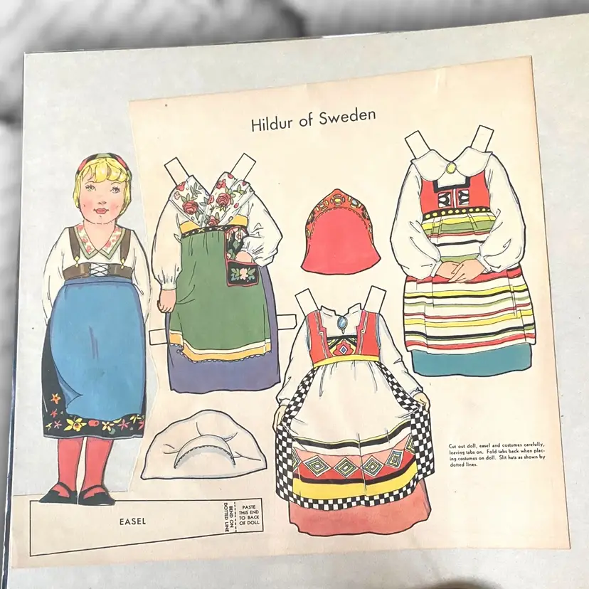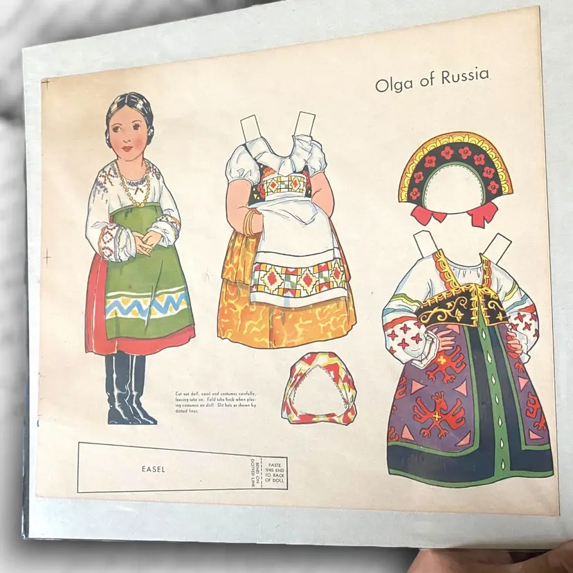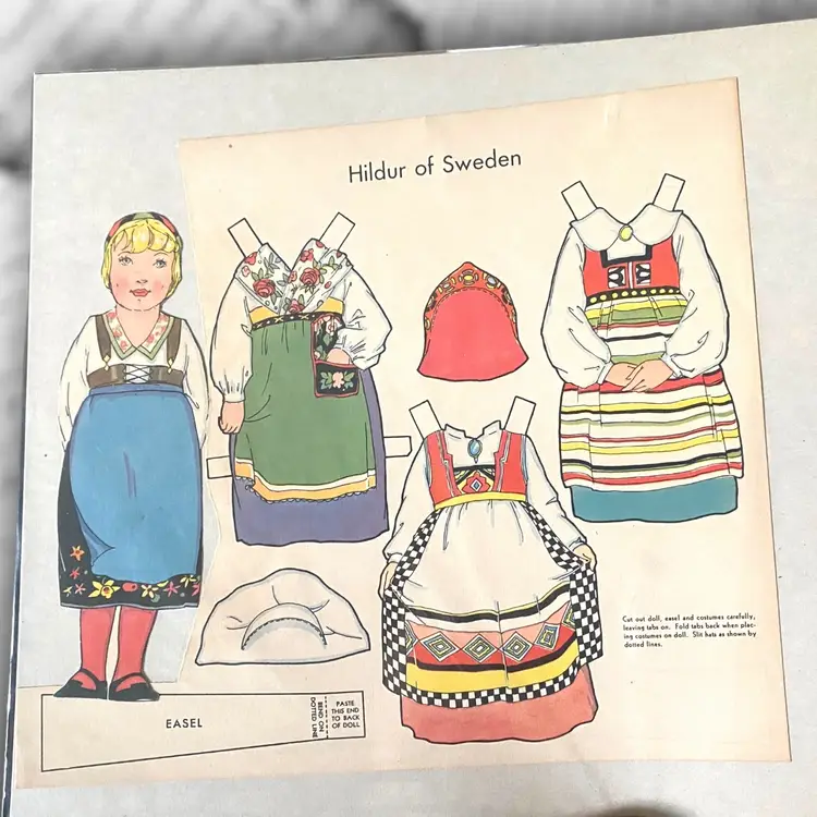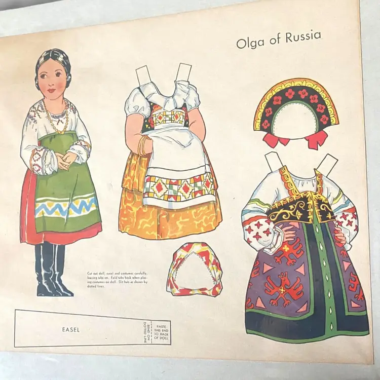 •paper doll from “Dolls of Many Lands” (would have originally been 10 countries but I only have 6 available) all have been partially cut out except Russia •Choice of: -Olga of Russia -Bill of USA -Hildur of Sweden -Little Flower of Japan -Gretel of Holland -Marie of Italy