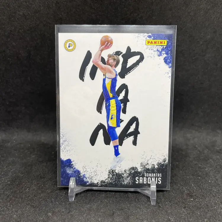 1st time buyer? Get $5 Off with code DISTRICT5 at checkout! Card as shown. All cards $20 and under ship PWE via lettertrackpro [https://www.letter-track.com/registerap.asp?AFID=8757] Card Size: Standard Autographed: No Set: 2020-21 Panini Instant Product: Single Player/Athlete: Domantas Sabonis Year Manufactured: 2021 Vintage: No Sport: Basketball Original/Reprint: Original Manufacturer: Panini Features: Serial Numbered, Limited Edition, Short Print Team: Indiana Pacers Season: 2020-21 League: NBA Print Run: 2390 Card Condition: Near Mint Material: Card Stock Grade: Ungraded Original/Licensed Reprint: Original Series: Panini Instant Type: Sports Trading Card Year: 2020-21 Era: Modern (1970-Now) Theme: Sport Country/Region of Manufacture: United States Card Manufacturer: Panini