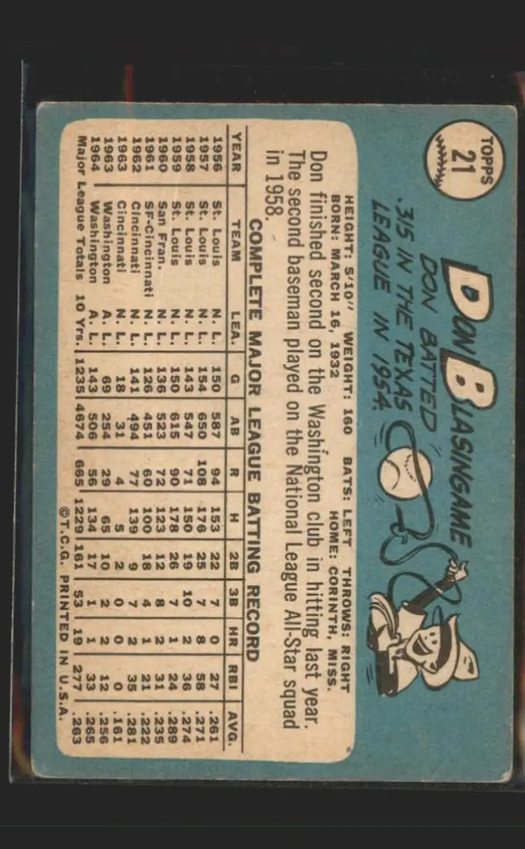 Don Blasingame 1965 Topps #21 - (140) - Washington Senators