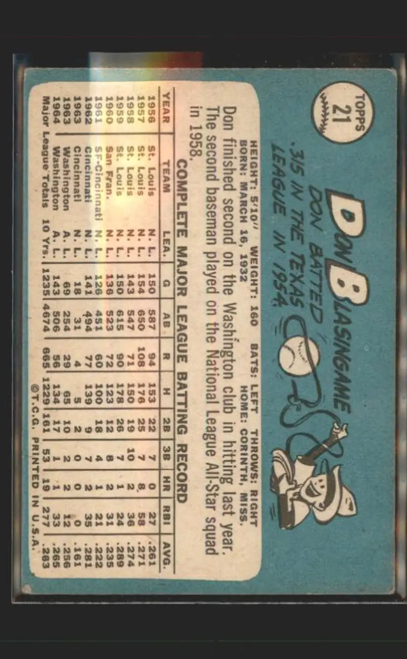 Don Blasingame 1965 Topps #21 - (140) - Washington Senators 2
